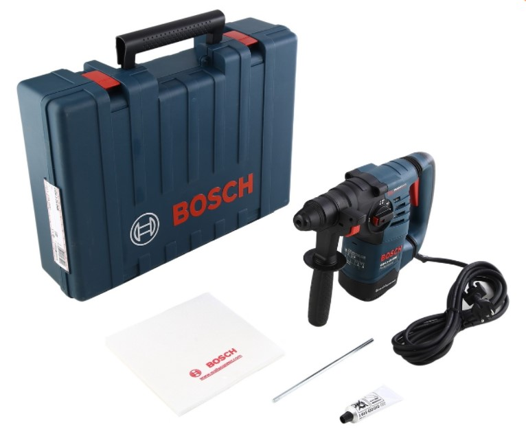 Производительный электрический перфоратор профессионального класса с компактной L-образной компоновкой. Получает питание от бытовой сети, предназначен для выполнения внушительных объемов работ по долблению и сверлению твердых минеральных материалов, металлов, дерева и пластмасс. Компоновка с вертикальным расположением двигателя обеспечила уменьшенную до 32,6 мм длину, которая может быть принципиально важна при работе в условиях ограниченного пространства. Перфоратор Bosch GBH 3-28 DRE Professional 061123A000 оснащен производительным коллекторным электродвигателем (800 Вт) и долговечным редуктором со стальными шестернями. Усиленный механизм позволяет генерировать удары с энергией до 3,1 Дж. Рассчитан на эксплуатацию в трех режимах: долбления, ударного и классического сверления. Поможет в штроблении штукатурок и легких бетонов. Оперативно сверлит отверстия в высокопрочном бетоне и железобетоне, искусственном и натуральном камне. Снабжен эффективной системой гашения вибрации и защитной муфтой, предотвращающей вращение инструмента при заклинивании сверла или бура. Благодаря эргономичной конструкции корпуса и резиновым накладкам рукояток, перфоратор удобен в работе, а его умеренный вес (3,5 кг) не затруднит транспортировку к месту использования.