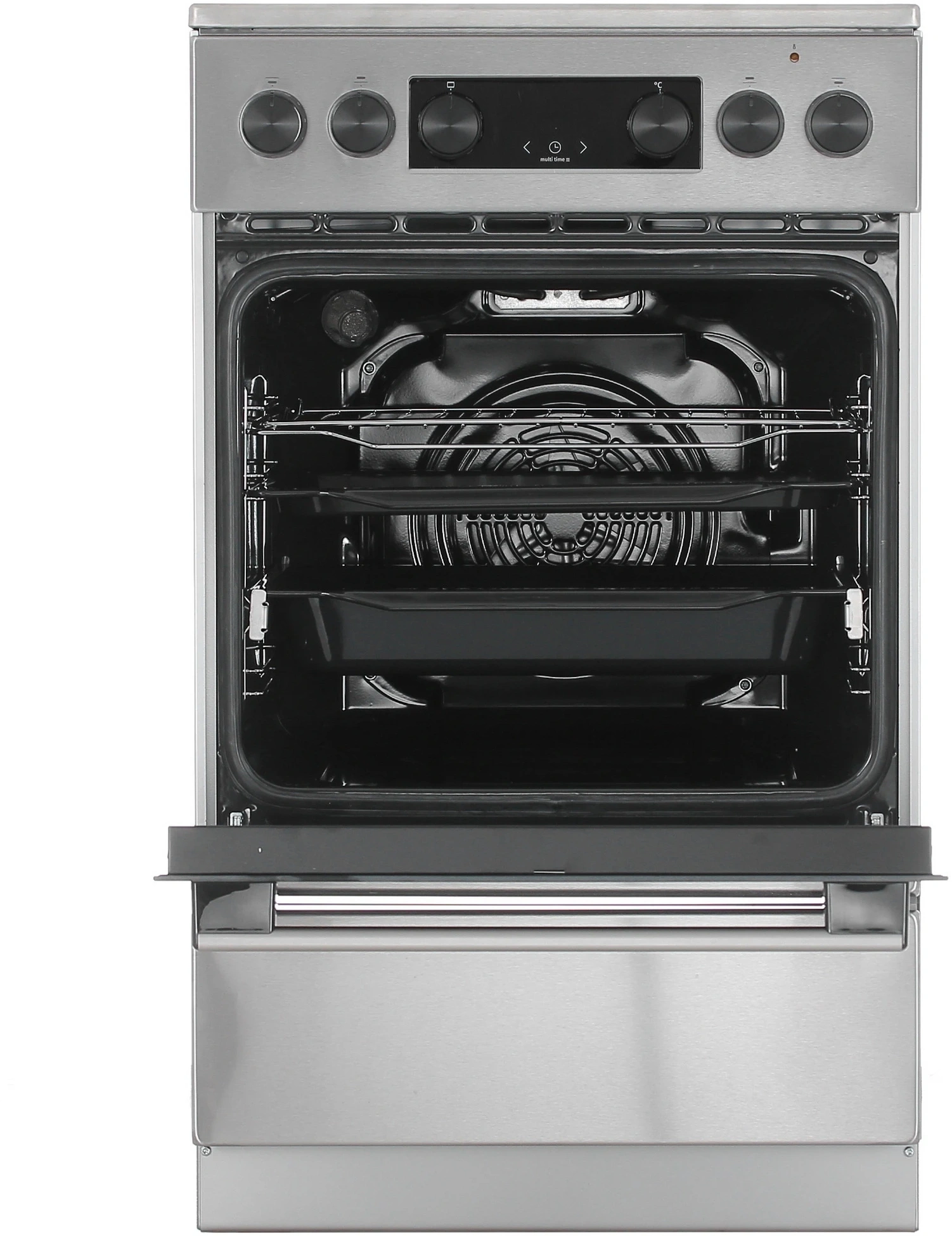 Gorenje GEC5C40XAOT дополнена духовкой на 70 л с грилем, конвекцией и яркой подсветкой, разными режимами работы и программой размораживания. Стенки камеры легко очищаются под воздействием горячего пара. Благодаря сводчатому потолку блюда в духовке прогреваются равномерно со всех сторон. Панель управления оснащена дисплеем, сенсорными кнопками и привычными поворотными рычагами. Вы можете настраивать часы и таймер с звуковым сигналом.