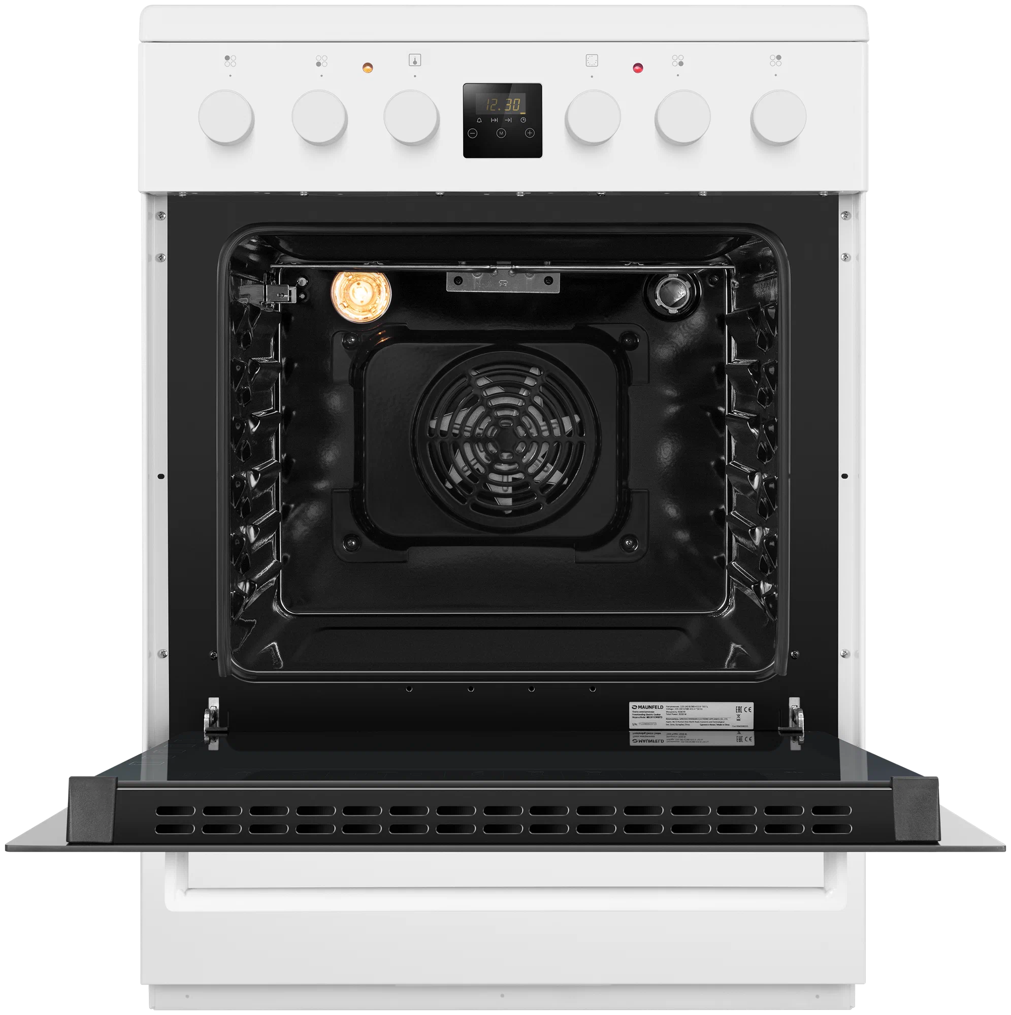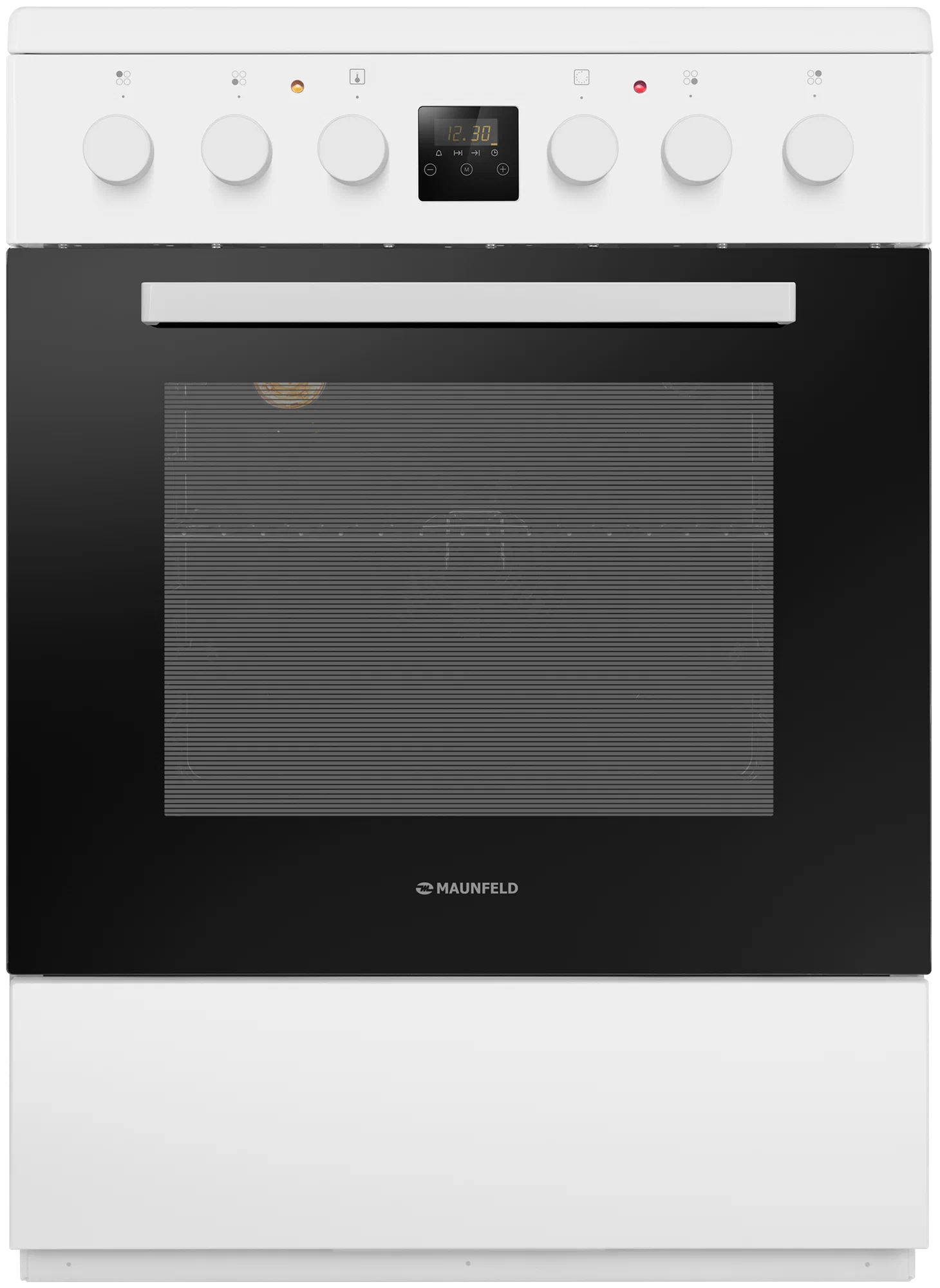 Электрическая плита MAUNFELD MEC67CW08TD выполнена в белом цвете с цифровым дисплеем и поворотными переключателями. Стеклокерамическая варочная поверхность легко отмывается от загрязнений и устойчива к внешним воздействиям, двухконтурная конфорка позволит готовить в посуде разного диаметра. Духовой шкаф на 59 литров оснащен внутренней подсветкой. Гидролизная очистка с помощью пара облегчит уход за прибором. В комплекте прилагаются: противень для выпечки, решетка для гриля.