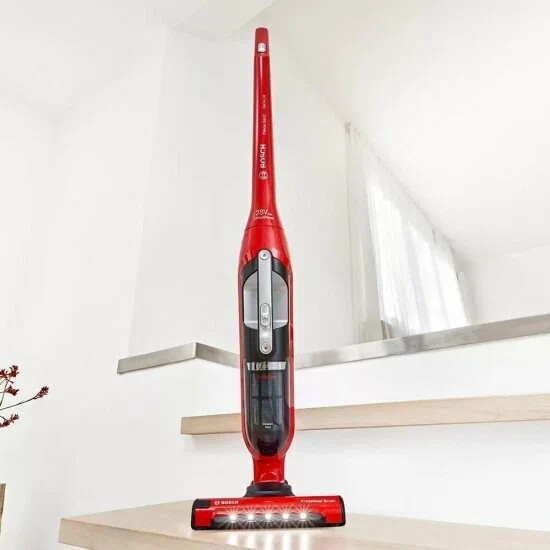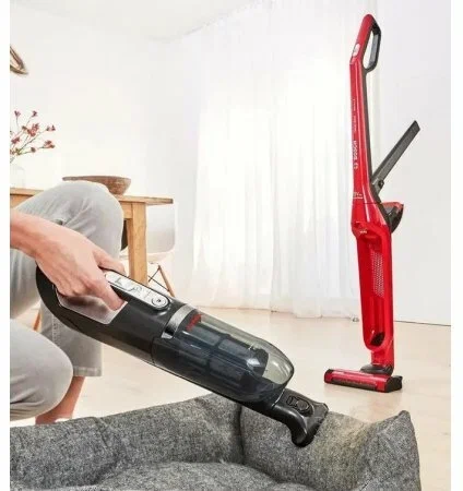 Ручной пылесос (handstick) Bosch Flexxo Gen2 ProAnimal BBH3ZOO28. Ручной пылесос (handstick) Bosch Flexxo Gen2 ProAnimal BBH3ZOO28 изготовлен брендом BOSCH. Ручной пылесос предназначен для очистки небольших поверхностей и сбора мелкого мусора в труднодоступных местах. Благодаря своей компактности и небольшому весу, пылесос добирается до самых дальних уголков.Модель с мощностью всасывания меньше 100 ватт подойдёт для лёгкой и быстрой уборки пыли с гладких поверхностей. Переключатель регулировки мощности расположен на ручке пылесоса.Щелевая насадка в комплекте предназначена для удаления пыли из углов и щелей. Особая конструкция насадки позволяет добраться до тех мест, куда не пролезет обычная широкая щетка. Насадка для мягкой мебели в комплекте разработана специально для тщательной очистки мягких поверхностей, которые требуют особо бережного ухода. Мягко очищает от пыли, ниток, волос и шерсти животных. Устройство оснащено контейнером для пыли. Объем пылесборника - 0,4 л.Пылесос работает от аккумулятора.Цвет корпуса изделия - красный.