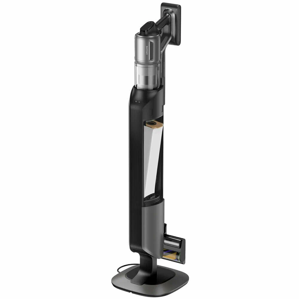 В комплект входит система подготовки пылесоса к следующей уборке и приспособление для размещения аксессуаров. При установке на подставку активируется автоматически сброс мусора в трехлитровый мешок и удаление пыли из трубки.