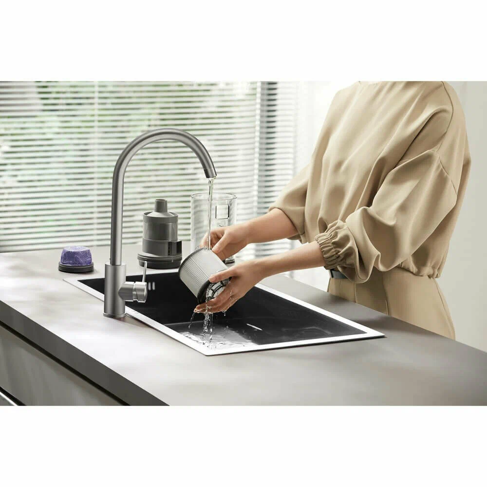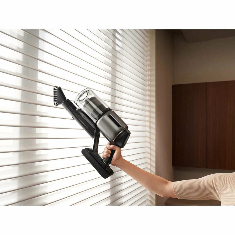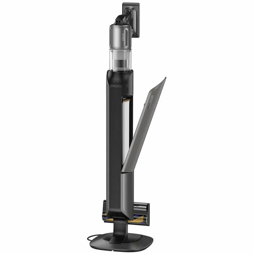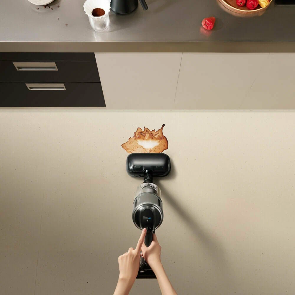 Dreame Z40 Station можно трансформировать в компактный прибор для удобной уборки в салоне автомобиля или чистки мягкой мебели. В наборе — шесть насадок для разных целей, в том числе для вычесывания домашних животных и сбора шерсти. Настройки выбираются с помощью сенсорных кнопок, информация выводится на дисплей.