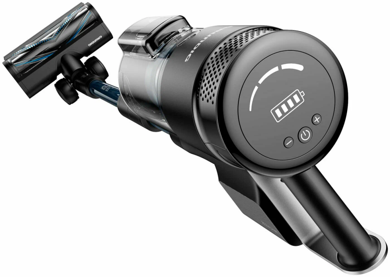 Вертикальный пылесос мощный, оснащенный двигателем с силой всасывания до 150 Вт и тремя режимами работы, он легко справляется с загрязнениями, включая труднодоступные места благодаря гибкому корпусу.