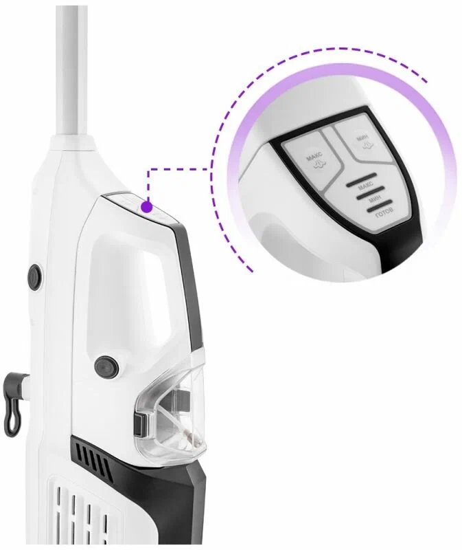 Дополнительная информация: прибор может работать в 3 режимах: одновременное всасывание пыли и обработка паром; всасывание пыли и мусора; чистка паром; емкость резервуара для воды - 400 мл