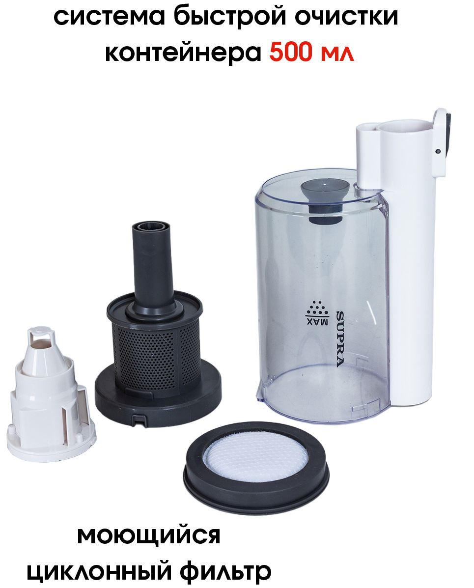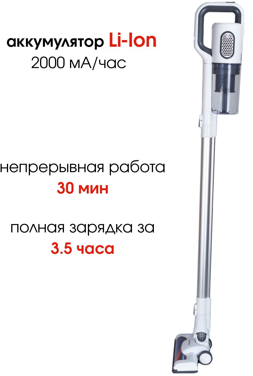 Тип: Ручной пылесос Бренд: SUPRA Модель: VCS-5095 PartNumber/Артикул Производителя: VCS-5095 Цвет: белый Мощность: 120 Вт Работа с контейнером для пыли: ДА Тип уборки: сухая Объем пылесборника: 0.5 л Регулировка мощности: на корпусе Труба для всасывания: цельная Общее количество насадок: 2 шт Насадки в комплекте: турбо-щетка c LED-подсветкой, узкая насадка-щетка для уборки труднодоступных мест и очистки мягкой мебели Турбощеткa в комплекте: ДА Насадка для мягкой мебели: ДА Тип электропитания: от аккумулятора Тип аккумулятора: Li-Ion Емкость аккумулятора: 2200 мAч Время уборки минимальное: 15 мин Время уборки максимальное: 30 мин Время заряда максимальное: 210 мин Уровень шума: 72 дБ Стандартный цвет для фильтра: белый Вес: 1.94 кг Ручной пылесос (handstick): ДА Настенное крепление: Да Сухой тип уборки: ДА Съемный ручной пылесос: ДА Тип (для фильтра Ситилинк): Вертикальный пылесос Объем упаковки (ед): 0.025623 м3
