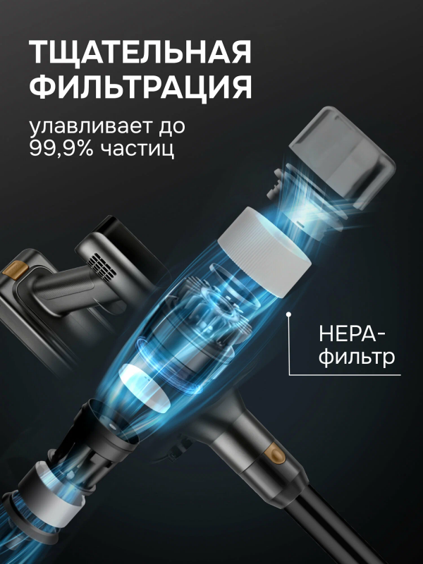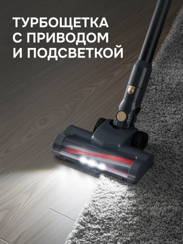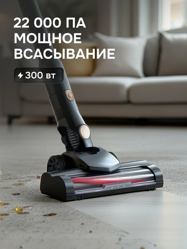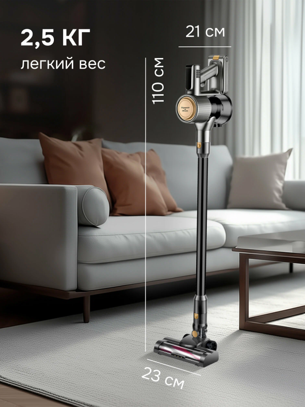 Вертикальный беспроводной пылесос ZVC-1500 для быстрой и эффективной уборки.Современное решение для комфортной уборки без проводов. Лёгкий, маневренный и мощный пылесос легко справляется с пылью и мусором на всех типах покрытий — от паркета до ковров. Идеален для ежедневной уборки и труднодоступных мест.Ключевые особенности и преимущества:Беспроводной дизайнРаботает от аккумулятора, не требует подключения к розетке — свобода движения по всей квартире или дому, включая лестницы, балконы и даже автомобиль.3 уровня скорости и циклонная система3 скорости (Eco, Min, Max) позволяют эффективно собирать пыль, крошки, волосы и шерсть домашних животных. Подходит для всех типов покрытий — от паркета до ковролина.Вертикальный форматКомпактная конструкция занимает минимум места при хранении. Пылесос легко ставится в угол, нишу или шкаф.Лёгкий вес и эргономикаБлагодаря небольшому весу и продуманной конструкции его удобно держать одной рукой — особенно важно при уборке потолков, мебели и труднодоступных мест.Съёмный ручной модульПылесос трансформируется в компактный ручной — идеально для мебели, салона автомобиля, полок, мягких игрушек и других небольших поверхностей.Длительное время автономной работыСовременный литий-ионный аккумулятор обеспечивает до 30 минут непрерывной уборки на одном заряде.Многоуровневая фильтрацияHEPA-фильтр задерживает до 99,9% частиц пыли и аллергенов, возвращая в помещение очищенный воздух — особенно важно для семей с детьми и аллергиками.Простота уходаКонтейнер для пыли легко очищается, без использования мешков. Щётки и фильтры моются под водой.