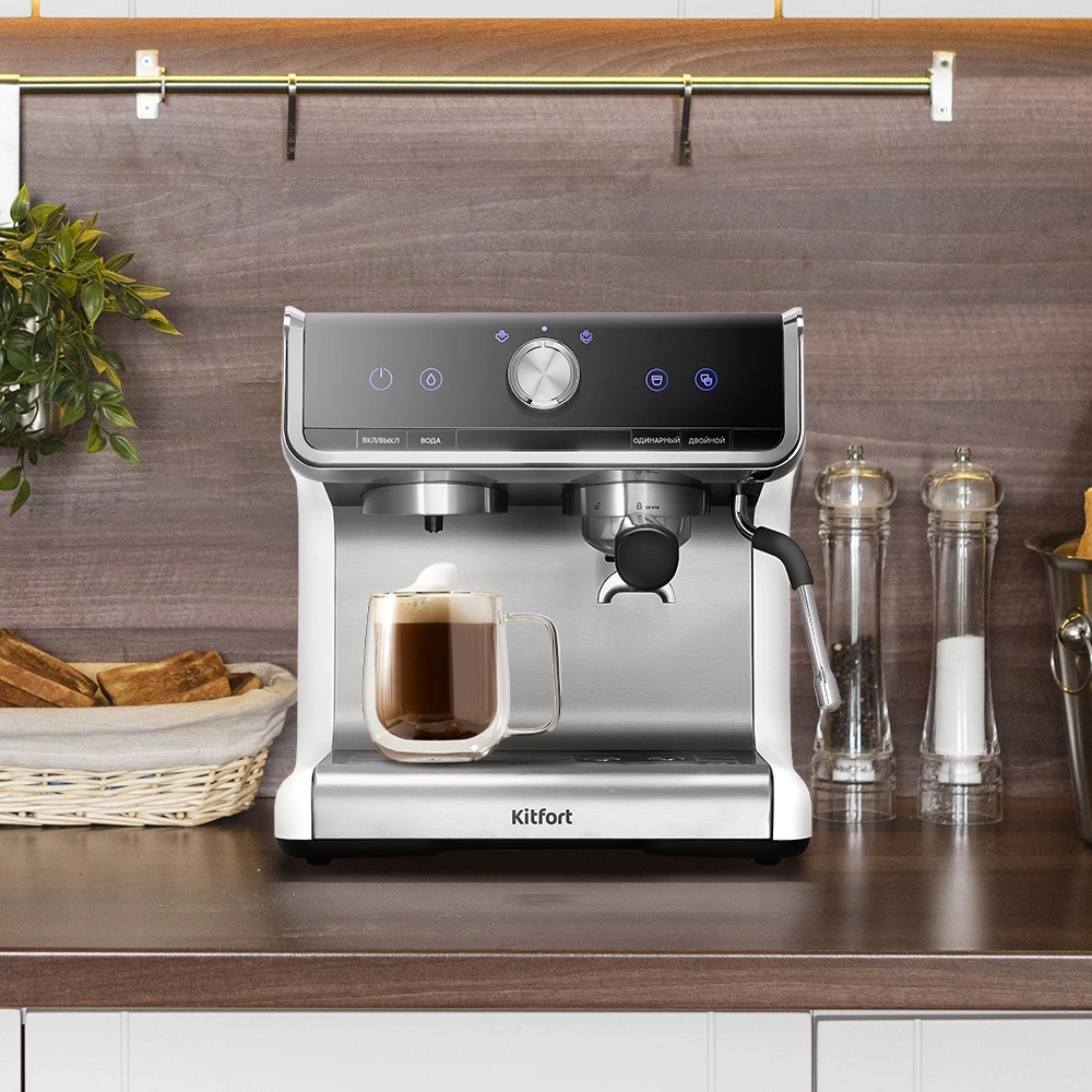 Кофеварка рожковая Kitfort KT-7170, серебристый/черный