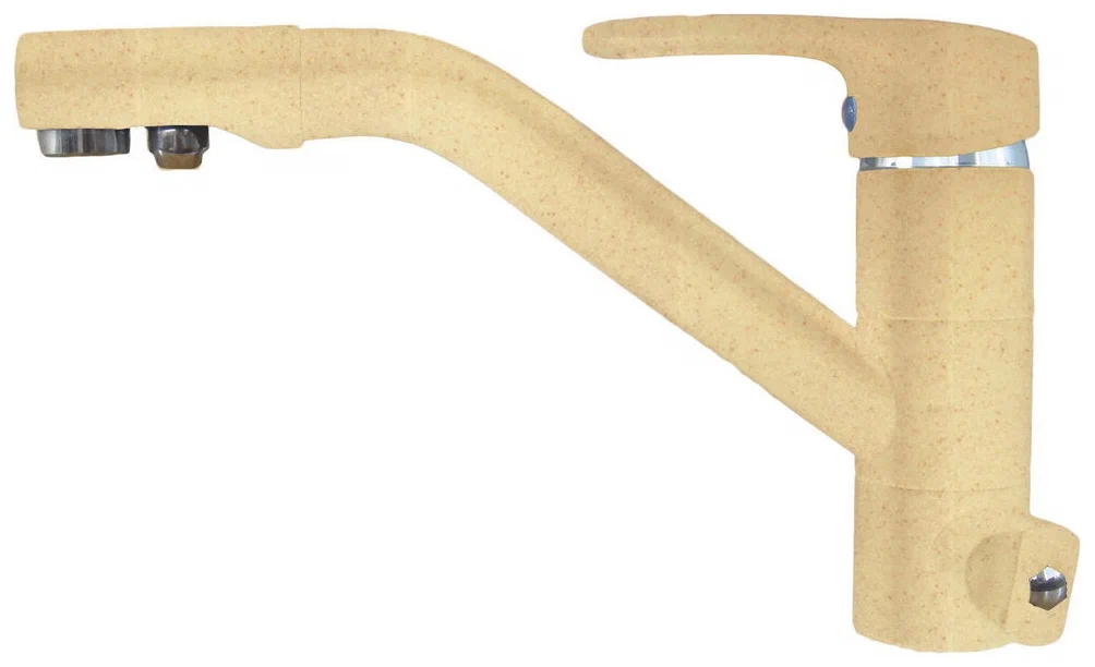 Потребительские качества: Материал корпуса изготавливается из латуни. Не подвержен коррозии и не влияет на химический состав воды. Излив с поворотным механизмом. Высота от края мойки до лейки – 155 мм. Подойдет для компактной мойки. Внешнее покрытие – комопзит. Поверхность устойчива к царапинам. Уход не требует специализированных моющих средств. Грязь легко удаляется стандартным моющем средством. Изделие сертифицировано. Продукт соответствует Единым санитарно-эпидемиологическим и гигиеническим требованиям. Комплектация: Подводка для фильтра питьевой воды и переключатель встроены в смеситель. Ну нужно покупать дополнительный кран. Встроенный аэратор снижает шум и разбрызгивание воды. При загрязнение, легко заменить самостоятельно. Продается в любом сантехническом магазине. Смеситель укомплектован гибкой подводкой Монтаж: Монтируется в отверстие кухонной мойки d=35 мм на шпильки. Гарантия: Продукция Dr. Gans® продается в фирменной упаковке. Паспорт изделия с гарантийным талоном имеет штамп ОТК. Гарантия производителя распространяется только на оригинальные изделия.