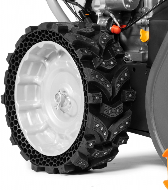 Уникальные колеса EX-ICE WHEELS: широкие безвоздушные колеса специально разработаны для снегоуборщиков и обладают лучшим сцеплением с поверхностью среди всех зимних шин. Это обеспечивает отличную проходимость и маневренность, позволяя вам легко и быстро убирать снег.