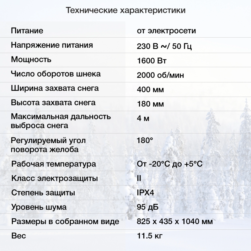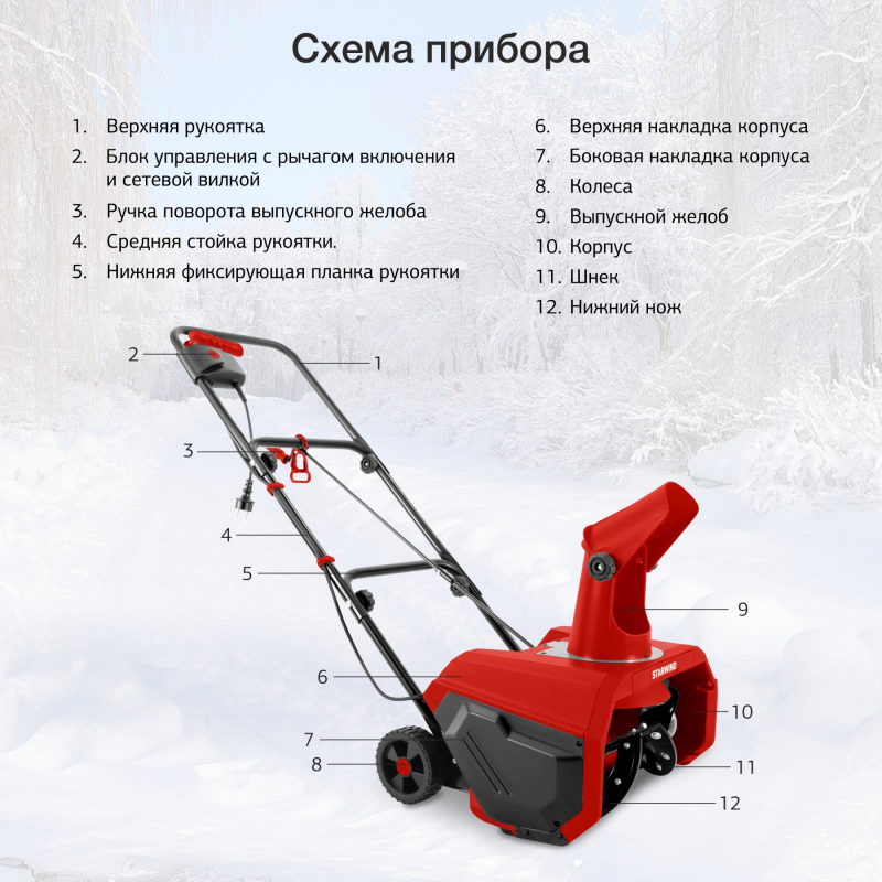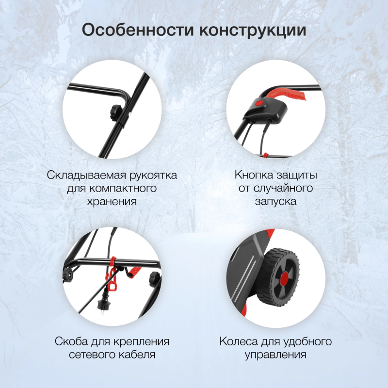 Бренд: STARWIND Тип: Снегоуборщик Модель: EST-1600 PartNumber/Артикул Производителя: EST-1600 Тип двигателя: электрический Мощность электродвигателя: 1.6 кВт Количество скоростей вперед: 1 Скорость вращения шнека: 2000 об/мин Уровень шума: 95 дБ Тип электрозапуска: от электросети 220В Электрозапуск: ДА Тип шасси: колесное Форма шнека: гладкая Материал шнека: обрезиненный металл Ширина захвата (мах): 40 см Высота захвата (мах): 18 см Материал желоба: пластик Угол поворота желоба: 180 ° Дальность выброса снега: 4 м Разблокировка колес: ДА Размер колеса: 12.5 см Тип электропитания: от электросети Вес товара: 11.5 кг Ширина в сборе: 82.5 см Высота в сборе: 43.5 см Глубина в сборе: 114 см Габариты упаковки (ед) ДхШхВ: 0.5x0.444x0.325 м Вес упаковки (ед): 13 кг Объем упаковки (ед): 0.07215 м3 Высота ковша: 180 мм Ширина ковша: 400 мм Возможность выбора стороны выброса: ДА Возможность управления одной рукой: ДА Регулировка дальности выброса: ДА