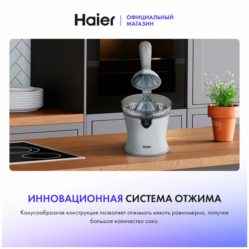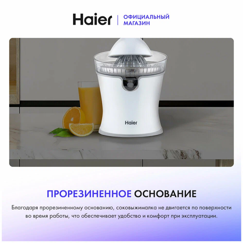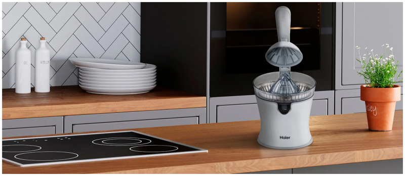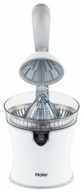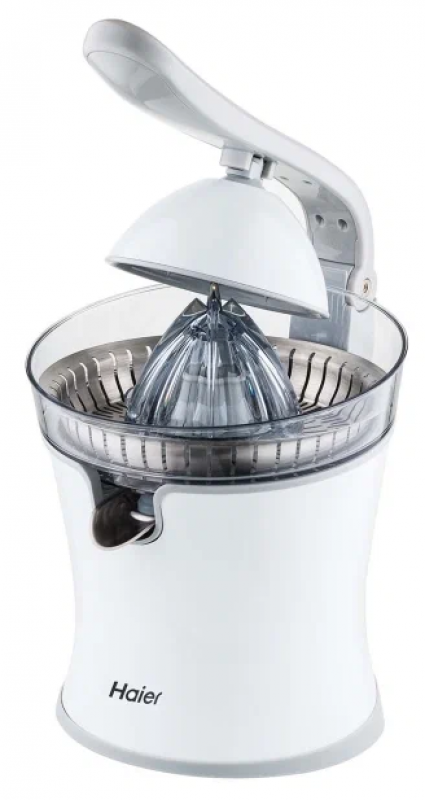 Соковыжималка Haier HJ-700 позволяет получать витаминный напиток из цитрусовых – от лаймов до грейпфрутов. Пользоваться ею предельно просто – вам достаточно разрезать фрукт пополам, положить его на конус и опустить ручку пресса. ТОЛЬКО КАЧЕСТВЕННЫЕ МАТЕРИАЛЫ Насадка из пищевой нержавеющей стали сохраняет естественный вкус сока. Она легко отмывается от остатков мякоти и не впитывает запахи. УДОБНАЯ КОНСТРУКЦИЯ Наклонный носик позволяет аккуратно переливать сок в чашку, не разбрызгивая ни капли. Плоское нескользящее основание делает устройство очень устойчивым.