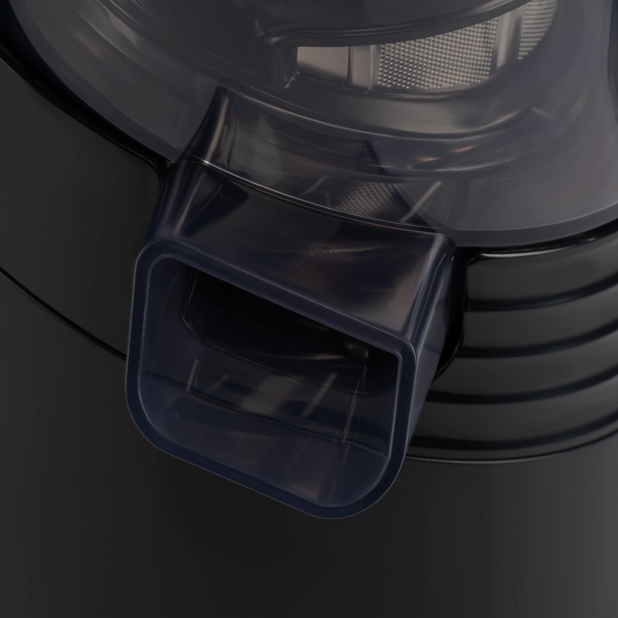 Практичный дизайн. Благодаря вертикальному расположению шнека соковыжималка не занимает много места, а продуманная компоновка облегчает разборку и мойку прибора.