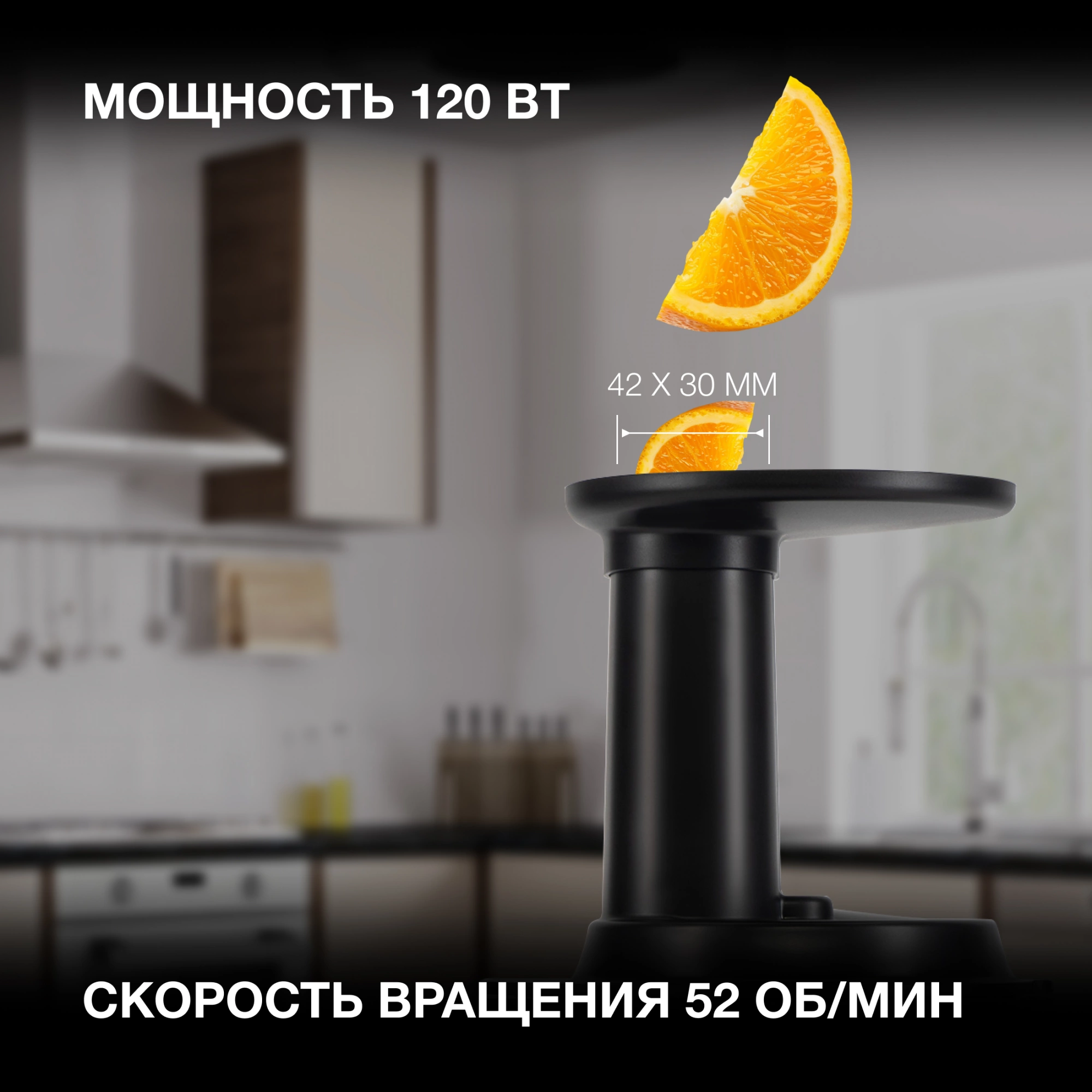 Наличие реверса. В случае застревания волокнистых или твердых овощей и фруктов достаточно сменить направление вращения шнека для устранения проблемы.