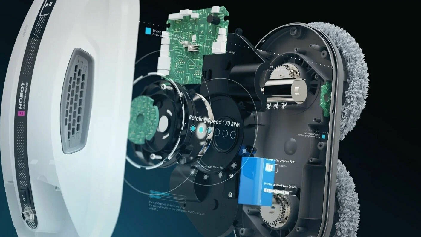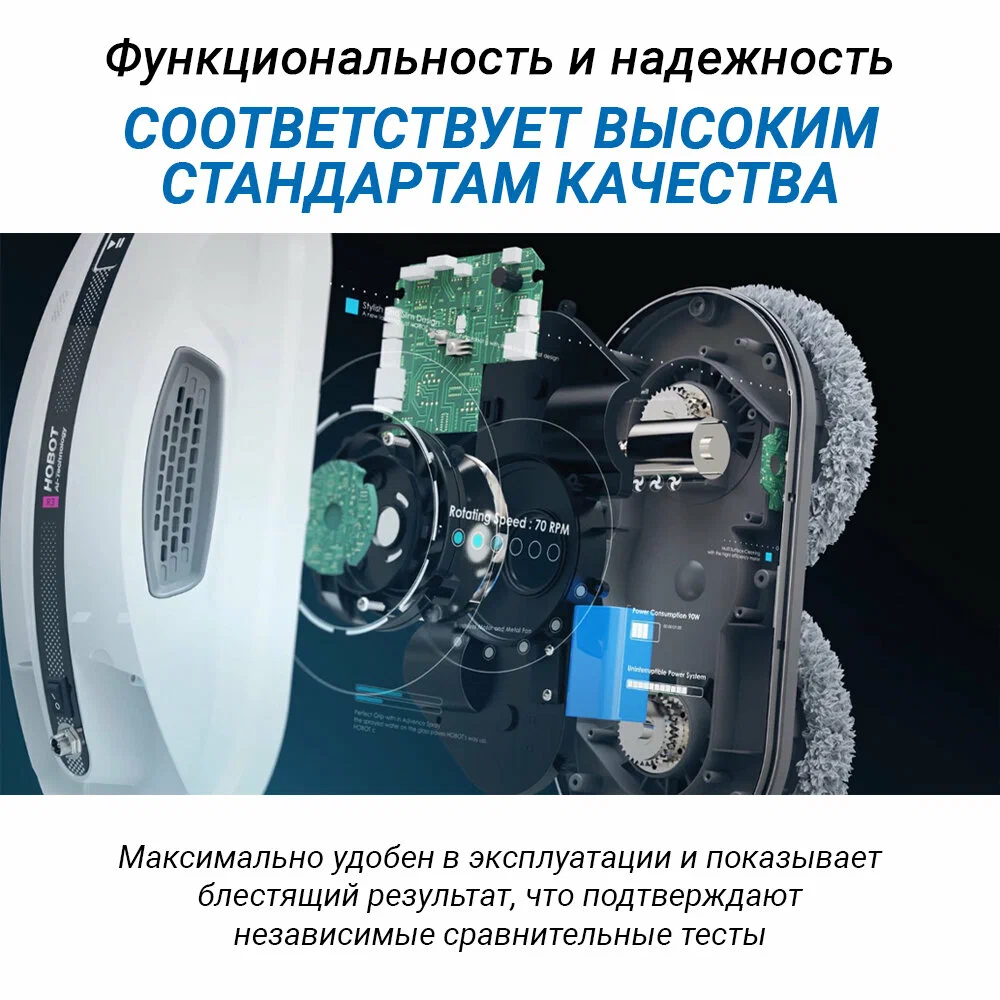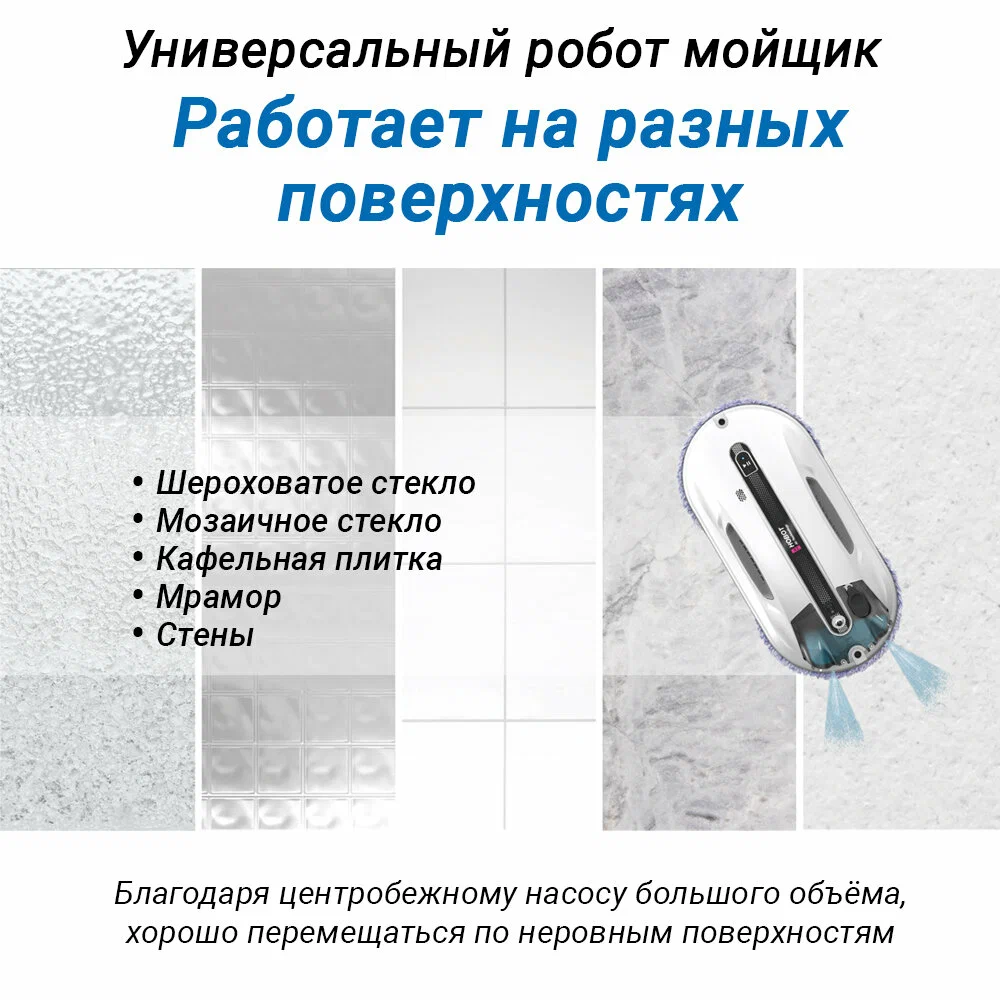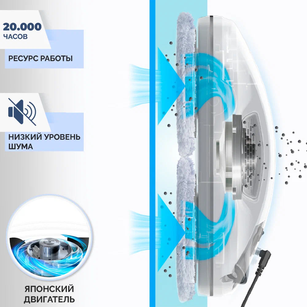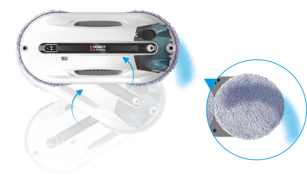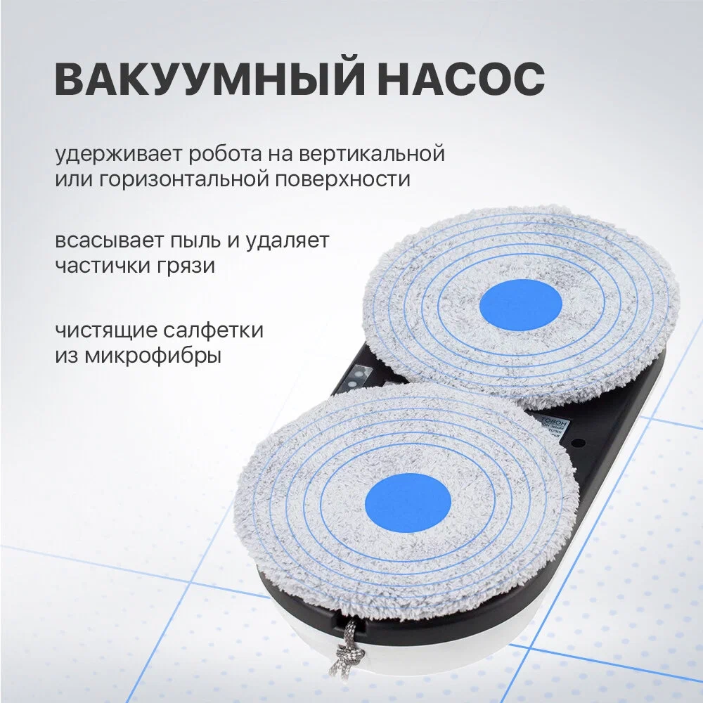 Робот-мойщик Hobot R3 Мощь, производительность и интеллект в стильном корпусе Система двойного ультразвукового распыления. Разработан с учетом коэффициента трения Превосходное сцепление благодаря предварительному распылению Пульт дистанционного управления и управление через смартфон Голосовые оповещения Creative Voice: запись голосовых сообщений Планирование маршрута на основе технологии ИИ для идеальной уборки Предназначен для очистки стекла любой толщины Новое в привычной форме Робот-мойщик окон Hobot-R3 кажется удивительно знакомым за счет своего знакомого очень стильного корпуса в приятном белом цвете. И все же перед вами полностью обновленный гаджет. У него еще более совершенная система распыления жидкости, более объемный, на 40 мл, резервуар для нее. Два встроенных сопла распыляют жидкость в две противоположные стороны. Такое решение способствует повышению качества уборки, а также помогает устройству надежнее крепиться к поверхности. Еще одно новшество заключается в системе изменяемых голосовых оповещений. Это значит, что владелец может сам настраивать и записывать звуковые оповещения по своему вкусу. Hrobot R3 - это сочетание удобных решений, мощного двигателя, практичных салфеток из микрофибры, надежных материалов, используемых в его конструкции. Передовые решения в виде обновленного программного обеспечения и интуитивно понятной системы управления превращают ваш Hobot-R3 в незаменимого помощника по уборке квартиры или загородного дома. Высокая степень очистки Двойное распыление жидкости Робот оборудован ультразвуковой системой, распыляющей микрочастицы небольшой плотности в две стороны. Это позволяет выполнять качественную очистку поверхностей без разводов и пятен. При этом точно контролируется расход моющего средства, чтобы использовать его экономно, но эффективно. Мощный двигатель Бесщеточный двигатель Nidec придает роботу-мойщику Hobot-R3 больше мощности. За счет этого обеспечивается надежное крепление устройства к поверхностям и качественная их очистка. При этом работа двигателя практически бесшумная, а сам он обладает долгим сроком службы. Высокая скорость очистки Мощный двигатель и вакуумный насос позволяют пылесосу достаточно быстро очищать окна и другие поверхности. Но при этом устройство остается надежно закрепленным на обрабатываемой плоскости. Запись звуковых оповещений У вас есть возможность настроить робота-мойщика по своему усмотрению. Для этого используйте функцию Creative Voice в фирменном мобильном приложении Hobot. Она предназначена для записи любых звуков и использования их вместо стандартных оповещений. Вы можете записать голосовое сообщения от своего лица или же заменить его на любой звуковой сигнал. Если вы хотите отключить звуковые сообщения, просто сделайте это с помощью приложения. Стильный вид Знакомый дизайн нового робота в приятном белом цвете завораживает своими плавными линиями, качественными современными материалами и общей стильностью корпуса и всех деталей на нем. Удобная форма Наряду с классным стилем у робота-мойщика Hobot R3 присутствует эргономичность и удобное расположение всех кнопок и креплений. Все настолько продумано, что вам будет легко всем этим пользоваться. Кнопки легко нажать и зафиксировать. В руке мойщик лежит очень удобно и надежно. Включение 1 кнопкой Чтобы запус
