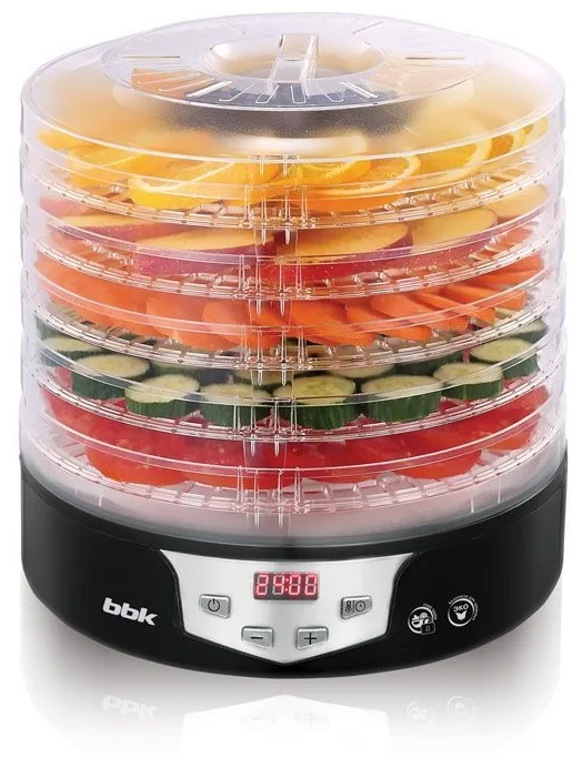 Сушилка для овощей и фруктов BBK BDH305D мощностью 240 Вт служит для домашней эксплуатации. Она пригодится при сушке полезных фруктов и ягод, которые подходят для приготовления компотов, киселей или в качестве вкусного и энергетического перекуса. В устройстве можно насушить фруктовые или овощные чипсы, а также сделать заготовки из лесных грибов и зелени.