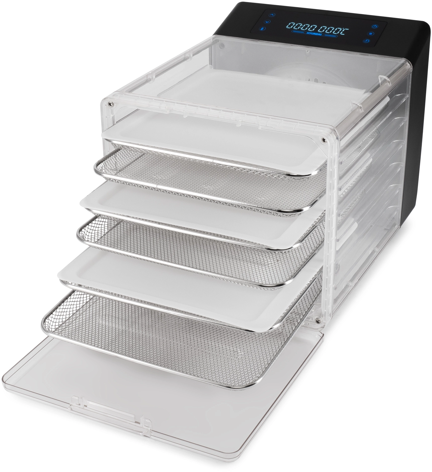Тип прибора: Сушка Назначение: для фруктов и овощей Бренд: HYUNDAI Модель: HYFD-8800 PartNumber/Артикул Производителя: HYFD-8800 Количество поддонов: 12 шт Мощность: 600 Вт Цвет: черный Дополнительный цвет: прозрачный Регулировка температуры, мин: 30 °С Регулировка температуры, макс: 75 °С Возможность сушки фруктов: ДА Возможность сушки овощей: ДА Возможность сушки грибов: ДА Возможность сушки трав: ДА Комплектация: 6 стальных поддонов , 6 поддонов для пастилы. Количество уровней: 6 Особенности: Разборный корпус для компактного хранения. Прозрачный корпус для визуального контроля за сушкой. Откидная дверца для удобства загрузки и выгрузки.