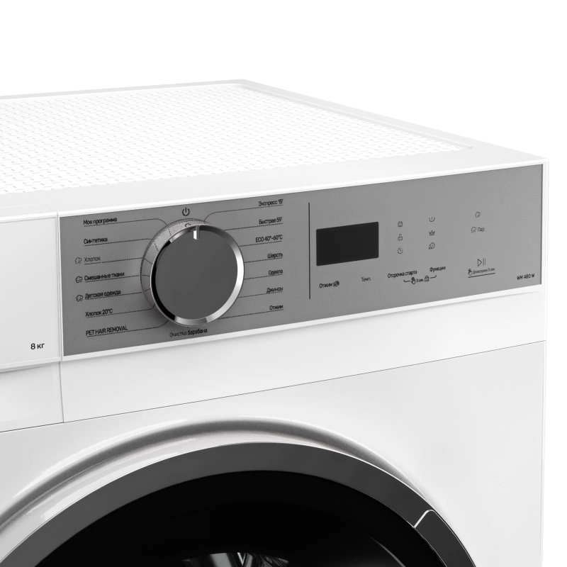 Компактные размеры (85,5 см в высоту, 59,5 см в ширину и глубина всего 47 см) делают установку максимально удобной даже в небольших помещениях, а отдельностоящее исполнение предоставляет свободу размещения. Диаметр загрузочного люка 34 см обеспечивает легкий доступ к барабану, что особенно удобно при загрузке объемных вещей, например, одеял или пледов. Современный LED-дисплей органично вписывается в общий дизайн и интуитивно понятен, позволяя быстро выбрать нужную программу и контролировать процесс стирки.