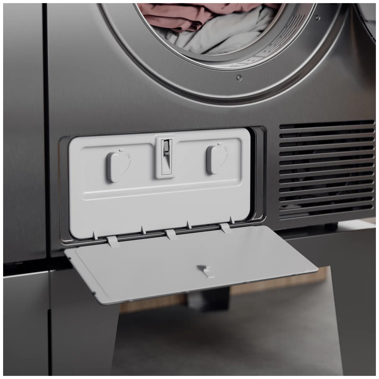 Общие характеристики; Геометрический объем барабана: 117 литров; Тип сушки: Тепловой насос; Количество программ: 30, 17 предустановленных программ, 13 программ с изменяемыми настройками; Управление: Цветной TFT дисплей с поддержкой русского языка; Материал барабана: Нержавеющая сталь; Материал корпуса: Окрашенная сталь; Конструкция и технологии; Подготовка к использованию в прачечных самообслуживания; Технология сушки: Butterfly Drying; Дверца загрузочного люка: Перенавешиваемая; Тип шарикоподшипника: SKF; Отсрочка старта: до 100 часов; Барабан из нержавеющий стали; Защита белья от сминания AntiCrease; Возможность установки в колонну на стиральную машину: крепления в комплекте поставки; Отвод конденсата: Во встроенный сливной бачок или напрямую в канализацию; Стальное основание и ножки; Ножки: Регулируемые по высоте на 3 см; Система SensiSave; Данные для подключения; Подключение к электричеству: 230 В, 1 фаза, 10 А; Мощность подключения: 1 кВт; Мощность ТЭН: 0,8 кВт; Частота тока: 50 Гц; Длина электрического кабеля: 210 см