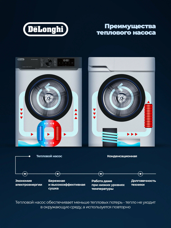 - Тип сушки: конденсационная с тепловым насосом