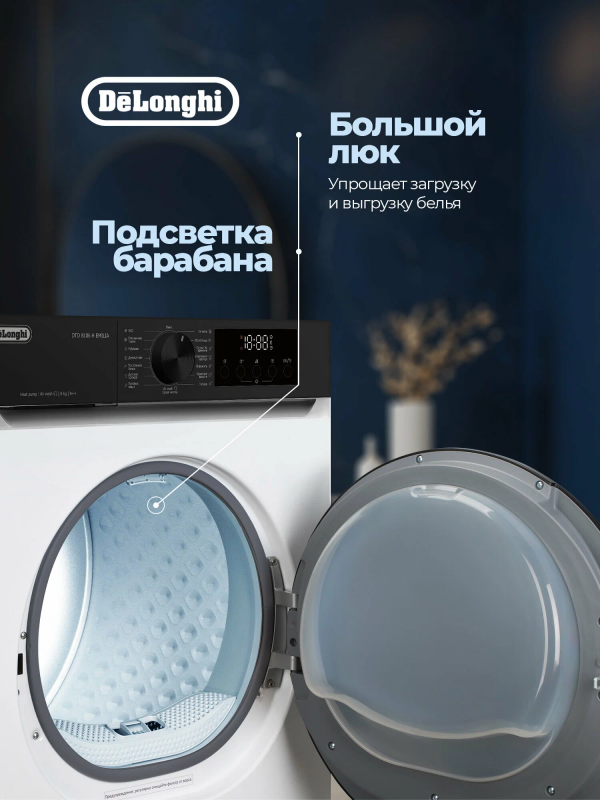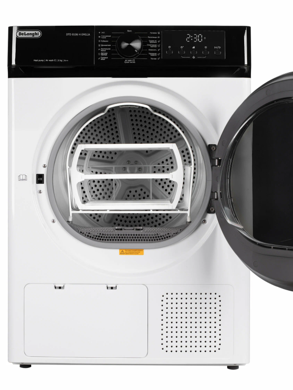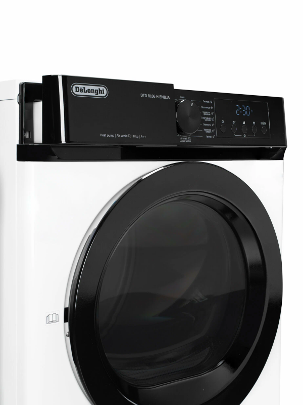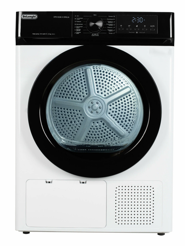 Сушильная машина Delonghi DTD 8106 H EMILIA – это современное решение для удобной, быстрой и бережной сушки белья дома. Модель рассчитана на загрузку до 8 кг и оснащена тепловым насосом, который обеспечивает высокую энергоэффективность класса А++, снижая расходы на электроэнергию и продлевая срок службы тканей. Вместительный барабан объемом 102 литра позволяет легко сушить как повседневные вещи, так и крупные предметы, а глубина корпуса всего 59 см делает установку удобной даже в стандартных ванных и прачечных. Машина предлагает 16 автоматических программ, среди которых интенсивная, деликатная, стандартная, быстрая, а также специальные режимы для различных тканей и изделий. Технология Air Wash обеспечивает сухую чистку без воды и порошка, освежая вещи и удаляя запахи. Дополнительно предусмотрен деликатный режим для ухода за чувствительными тканями, а также функция выбора уровня сушки и времени работы, чтобы всегда получать оптимальный результат. Для максимального удобства в Delonghi DTD 8106 H EMILIA предусмотрен LED-дисплей, на котором отображаются все настройки, индикаторы заполнения фильтра и бака для конденсата, а также напоминания о необходимости обслуживания. Подсветка барабана облегчает загрузку и выгрузку белья даже при слабом освещении. Таймер отложенного старта от 3 до 24 часов позволяет запускать сушку в удобное время, например ночью, когда тарифы на электроэнергию ниже. Безопасность обеспечивается системой Auto-Controlle Sistema, которая отслеживает работу и сообщает о возможных неисправностях, а также Bambino Controle – блокировкой от детей, исключающей случайное изменение программы. В комплект входит специальная полка для обуви, позволяющая бережно сушить кроссовки и другие вещи, требующие особого ухода. Сушильная машина Delonghi DTD 8106 H EMILIA сочетает вместительность, энергоэффективность и широкий набор функций, делая уход за бельем простым и комфортным. Благодаря надежному тепловому насосу, продуманной системе программ и удобному управлению эта модель станет отличным выбором для семьи, которая ценит качество, экономичность и современные технологии.