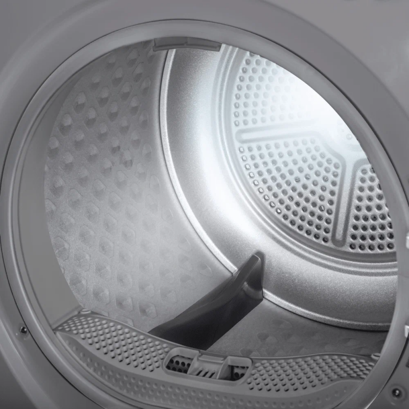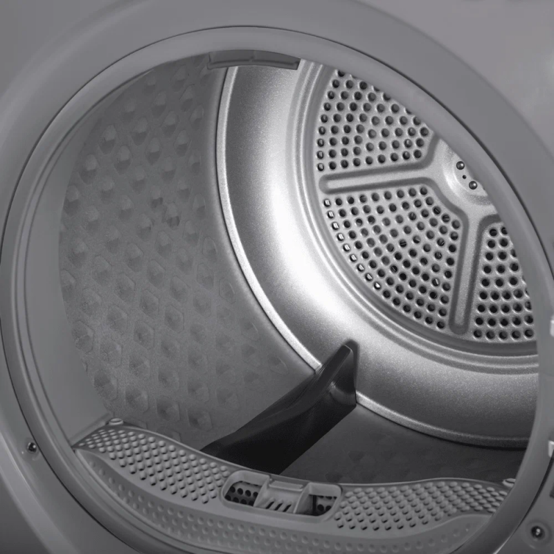 Загрузка белья до 8 кг в комбинации с внушительным объемом барабана дают вам возможность за один раз отправить все накопившееся белье в сушильную машину.
