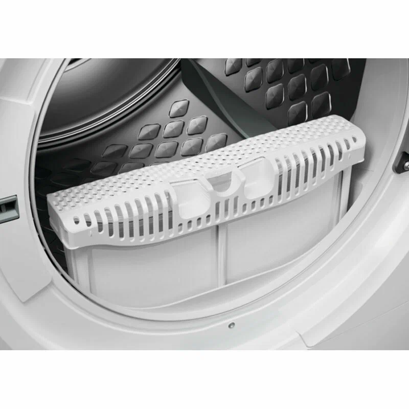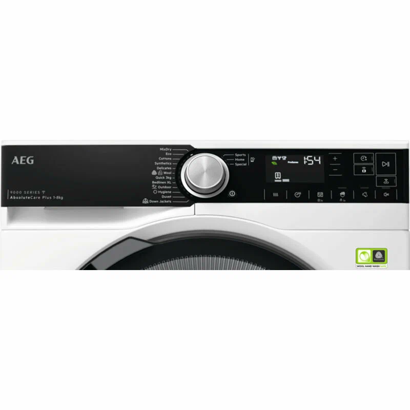 Сушильная машина AEG TR9586CE Элегантный белый корпус в сочетании с чёрной панелью управления и люком создаёт современный и сдержанный образ, который легко впишется в интерьер любой прачечной или бытового помещения. Высота 85 см, ширина 59,6 см и глубина 63,6 см обеспечивают привычную стандартную посадку отдельно стоящего прибора, а регулируемые ножки позволяют выровнять его даже на неровном полу. Большой LCD-дисплей выгодно подчёркивает строгую фронтальную компоновку, а сенсорные поворотные переключатели придают операции выбора программ ощущение продуманного контроля: управление остаётся интуитивно понятным, несмотря на богатый набор опций.