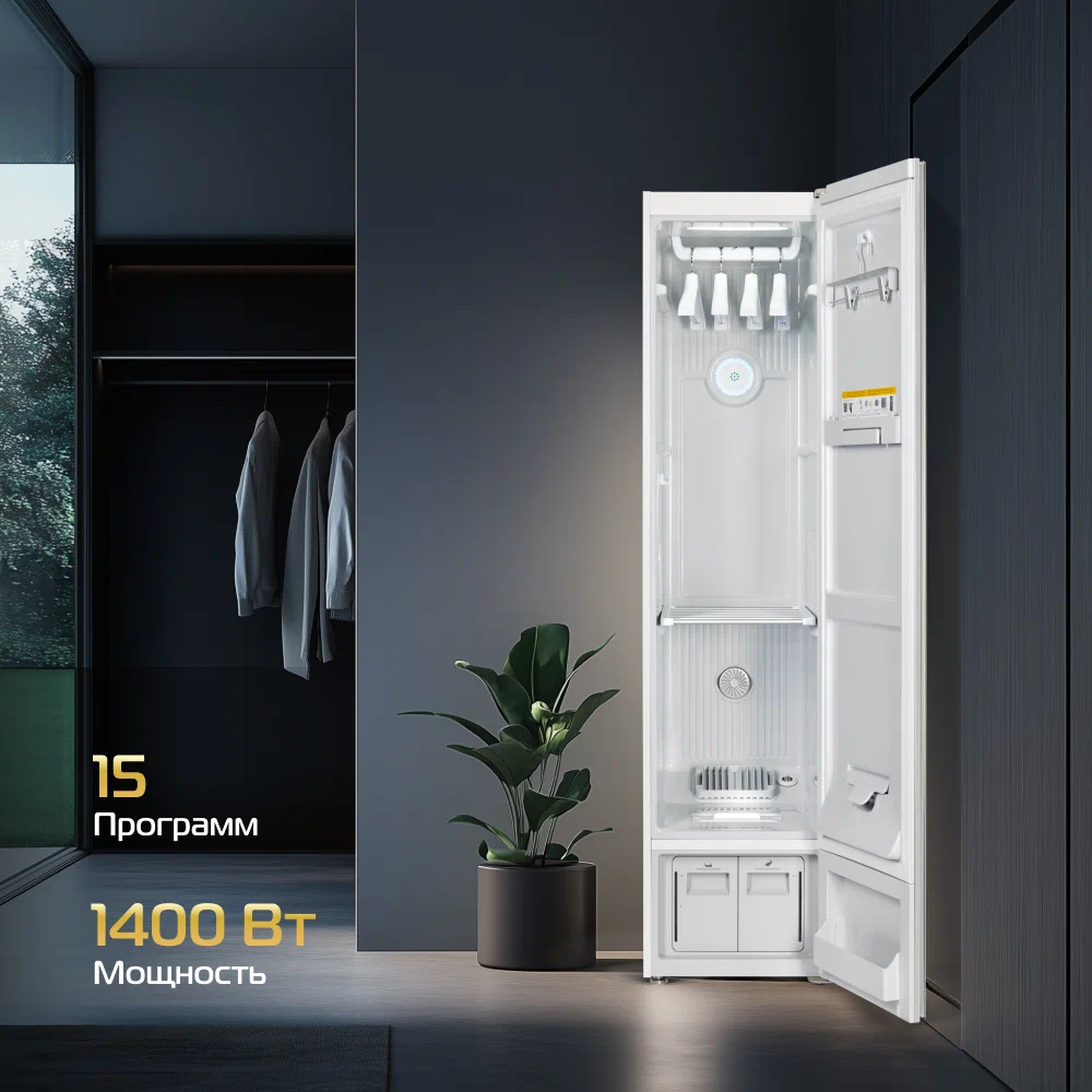 Паровой шкаф HIBERG SD 4G мощностью 1400 Вт — это инновационное устройство для бережного ухода за одеждой, текстильными аксессуарами и детскими игрушками. Оно возвращает безупречный внешний вид одежде из деликатных тканей, которую нельзя стирать, устраняет посторонние запахи (табака, пота и еды), придает вещам мягкость и лоск, а также защищает от бактерий.