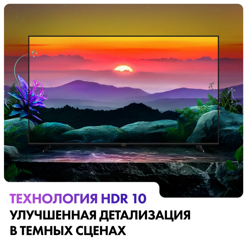 Телевизор Haier 50 LED H1 c экраном 50 дюймов имеет матовый корпус черного цвета и ножки по бокам. Погрузитесь во вселенную онлайн-кинотеатров, фильмов, сериалов, мультфильмов, любимых шоу и подкастов, которые собраны специально для вас в приложении evo tv. Отправляйтесь в путешествие по новым неизведанным мирам контента. Специально разработанный компанией Dolby Laboratories аудиоформат обеспечит максимально качественный звук для любимого досуга. Simulated Surround Sound создает эффект максимального погружения и заполняет все пространство, используя всего два динамика. А разрешение UHD 3840×2160 сделает это путешествие ярким и насыщенным.