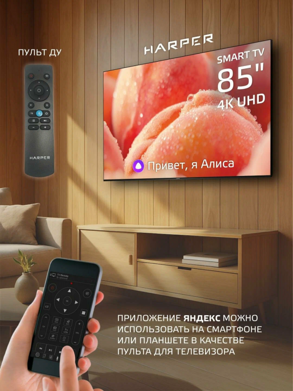 Наслаждайтесь просмотром любимых программ, сериалов и фильмов в разрешении 4K Ultra HD, такую возможность предоставляет телевизор85 дюймов смарт тв 4к Harper 85U750TS. Большой 85 - дюймовый экран, обладающий широкими углами обзора 178° и разрешением 3840х2160, обеспечивает максимально четкое, яркое и насыщенное изображение. Стабильно принимать сигналы цифрового и кабельного вещания позволяют встроенные цифровые тюнеры, а с помощью функции SMART TV, на базе современной Android 11 версии, вы сможете не зависеть от программы вещания, и в любое удобное время смотреть фильмы, сериалы и развлекательные шоу в сети интернет. Телевизор 85 дюймов смарт тв 4к Harper 85U750TS - это настоящий медиацентр с поддержкой Bluetooth и широким выбором функций (отображение программы телепередач, воспроизведение медиафайлов с внешних носителей и тп.). Для подключения к различным устройствам, а также для воспроизведения видео с внешних носителей телевизор 85 дюймов смарт тв 4к Harper 85U750TS имеет разъемы USB 2.0 и HDMI с поддержкой CEC и ARC, а для подключения к сети интернет можно использовать беспроводной интерес Wi-Fi 2.4 ГГц или проводной подключение с разъёмом RG-45 (витая пара).