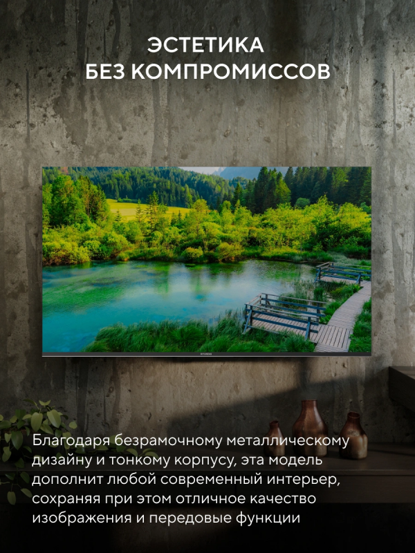 Особенности дизайна: безрамочный дизайн, возможность крепления на стену, тонкий корпус