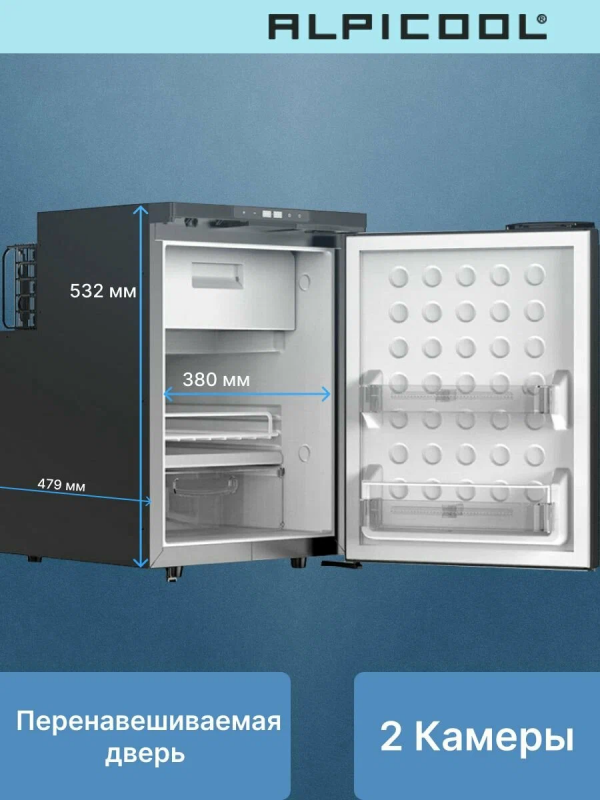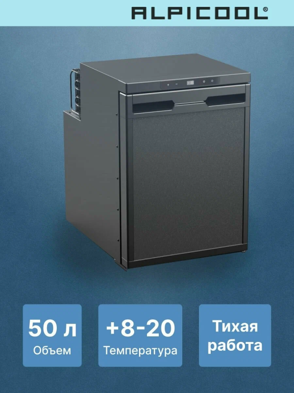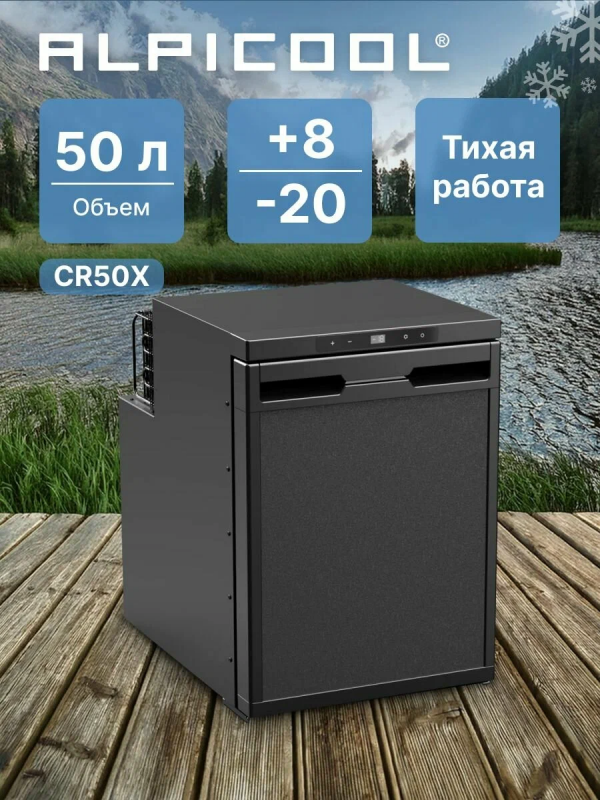 Автомобильный холодильник Alpicool CR50XАвтохолодильник компрессорный Alpicool CR50X это одна из самых востребованных встраиваемых моделей. Холодильник автомобильный предназначен для установки в микроавтобусах, грузовиках, на яхтах, катерах и конечно же в автодомах и кемперах. Имеет возможность питания от сети 12/24 В, внутри установлен высокоэффективный и надёжный компрессором постоянного тока. Интеллектуальная система защиты исключит разрядку аккумулятора.Внутреннее пространствоГибкая настройка температуры от +20° до -20° даёт возможность хранить ваши продукты замороженными или быстро охладить их. Автохолодильник 12в 220в имеет объём в 50 литров и разделён на две камеры: для охлаждения и для обычной или глубокой заморозки (при необходимости камеры можно объединить в одну, убрав специальную перегородку). Управление холодильником, так же осуществляться с мобильного телефона, через специальное приложение. Расположите продукты на 3х полках (которые можно размещать на разных уровнях), в выдвижном ящике, на дверце так же имеются 3 полки. При открытии дверцы включается LED-освещение, что позволить найти нужные продукты, даже в тёмное время суток.Простой монтажВам не потребуется никакого установочного комплекта. Холодильник крепится в нише с помощью саморезов, через четыре специальные отверстия, которые потом закрываются заглушками (рекомендации по установке и подключению Вы можете узнать из инструкции). Направление открывания двери можно изменить в нужную Вам сторонуОтличительные особенностиВнутренний объём на 50 литров;настройка температуры в диапазоне от +20C° до -20C°трансформируемое внутреннее пространство;интеллектуальная система защиты от разряда автомобильного аккумулятора;память настроек;управление через мобильное приложение;внутреннее LED-освещение;быстрый и простой монтаж.