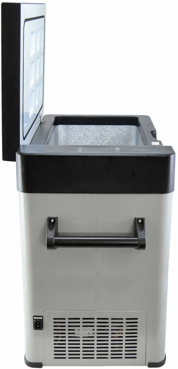 Libhof Q-65 - одна из моделей компрессорных автомобильных холодильников с увеличенным объёмом, самая крупная из всей линейки. Как и модели Q-30, Q-40 и Q-55, этот холодильник оснащён усиленными внешними ручками для переноски и прочным металлическим корпусом.Ключевые особенностиКак и все компресcорные холодильники Libhof, Q-65 имеет сенсорную панель управления, память настроек, трёхуровневую защиту от разряда аккумулятора. Диапазон настраиваемых температур от -25°C до +10°C, потребление энергии до 55 Ватт. Толстый изотермический слой стенок позволяет длительное время поддерживать низкую температуру внутри корпуса. Холодильник способен стабильно работать при наклонах до 45°.Охлаждающая система: компрессорОбъем холодильника: 60 лПитание: 12В, 24В, 220В (опционально)Температура внутри камеры охлаждения: от +10°С до -25°СИндикаторы: текущего режима, температурыРегулировки/управление: сенсорная панельОбъём хладагента: 38 гОсобенности: экорежим, 3 уровня защиты от разряда акбКомплект поставки: инструкция, кабель питания, холодильникПотребляемая мощность: 55 ВтЦвет: серыйРазмеры основной камеры, (ШхВхГ): 39,7х50х27,5 смРазмеры дополнительной камеры, (ШхВхГ): 8х34,5х27,5 смГабариты корпуса холодильника, (ШхВхГ): 67х59х36 смГабариты холодильника с ручками (съемные), (ШхВхГ): 81,2х59х36 смВес: 17.6 кг