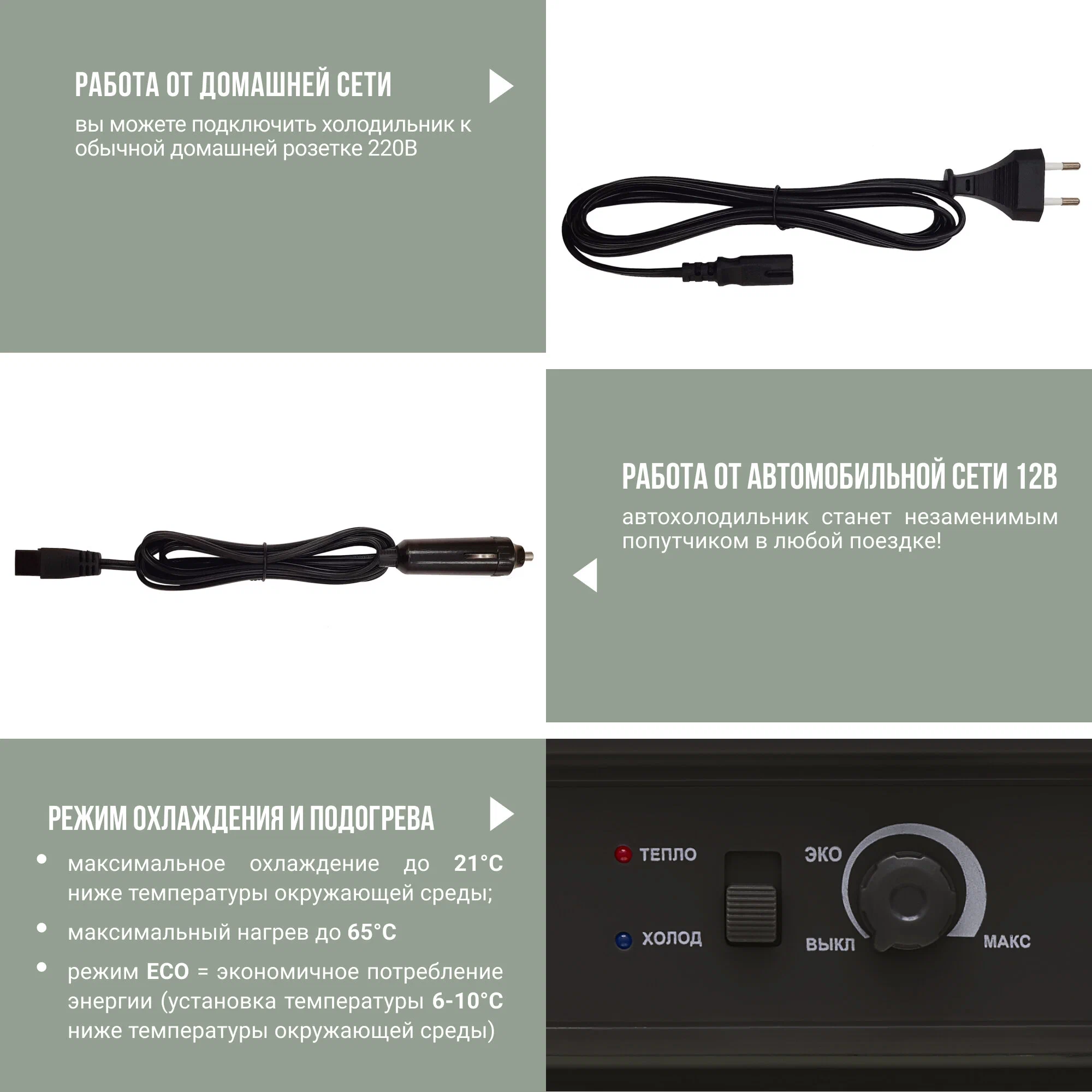 • Питание: от прикуривателя, от сети