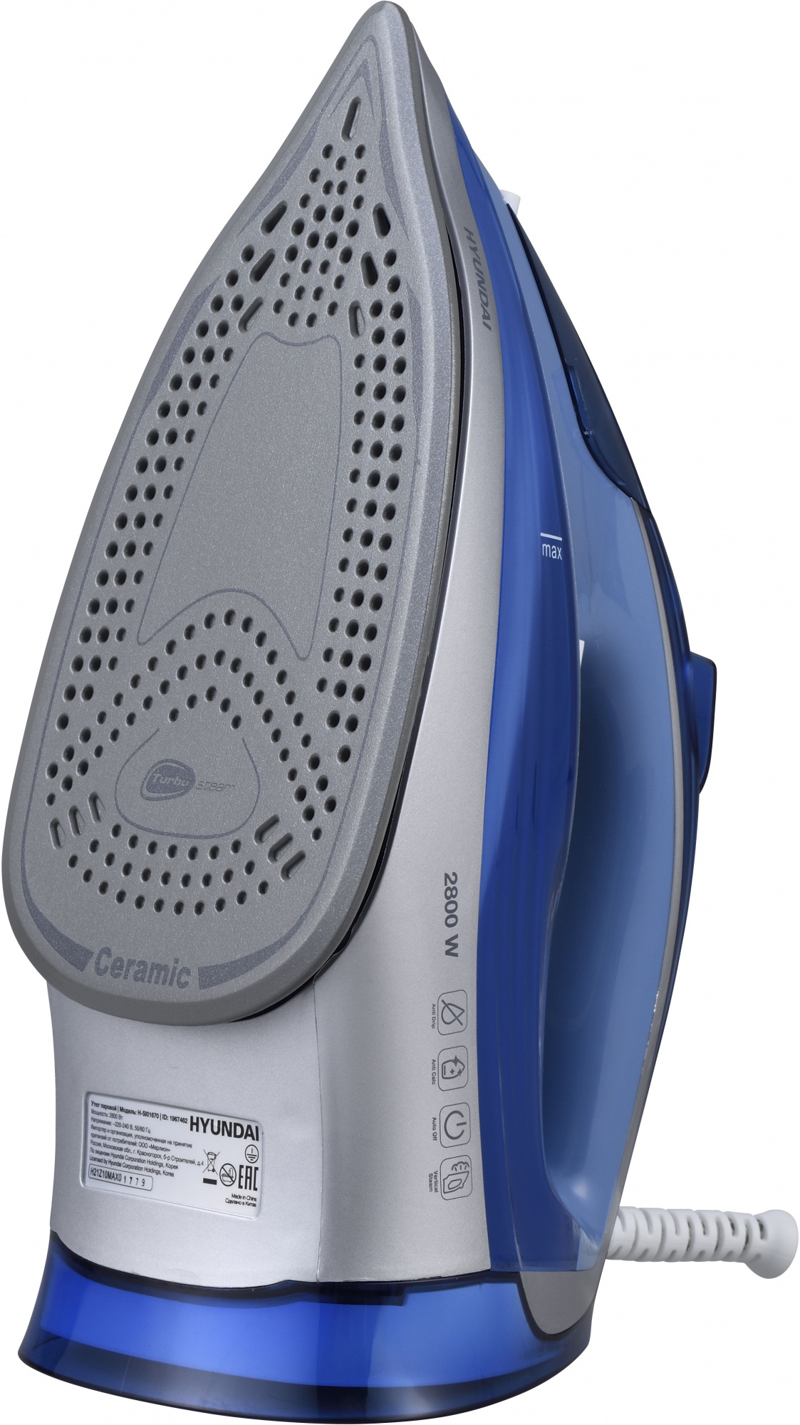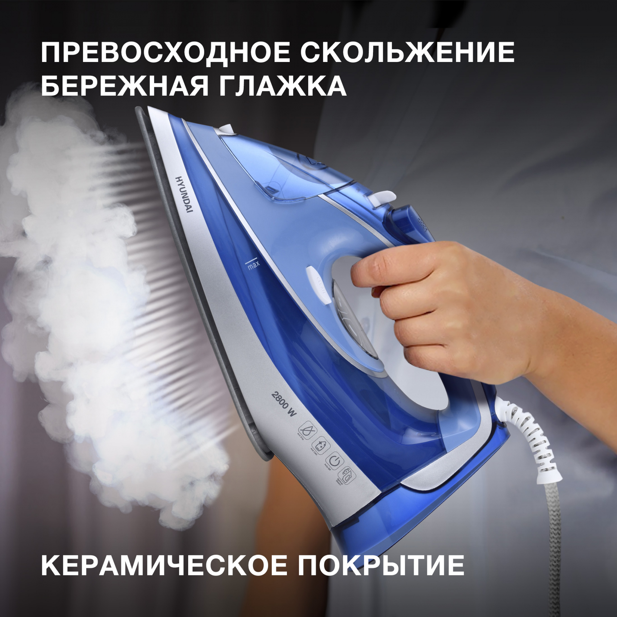 Привлекайте внимание. Утюг Hyundai H-SI01670 представлен в выразительной сине-серебристой расцветке и станет стильным решением для дома.