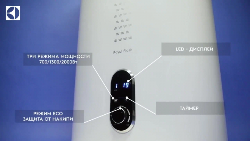 Electrolux EWH Royal Flash электрический накопительный водонагреватель с внутренним баком из нержавеющей стали.Все приборы серии сделаны в России с применением самых передовых технологий на современном оборудовании и имеют премиальную гарантию на внутренние баки – 8 лет.INOX CONSEPT +Внутренний бак изготовлен из высококачественной нержавеющей стали с высоким содержанием антикоррозионных легирующих элементов, таких как хром и никель. Сталь с такими характеристиками более устойчива к коррозии и технологична при обработке, что обеспечивает долговечность и высокую надежность работы водонагревателей. Нержавеющая сталь абсолютно безопасна и одобрена для применения в медицине и пищевом производствеТехнология AUTO ARGON WELDINGПри производстве внутренних баков водонагревателя применяется полностью автоматическая аргонная сварка нового поколения, что позволяет полностью избежать дефектов, связанных с ручным производством, гарантирует безупречное качество сварочных швов и коррозионную стойкость в период эксплуатации.Каждый водонагреватель проходит детальное тестирование после производства, что обеспечивает высокое качество и безупречную работу приборов на долгие годы.УниверсальностьВодонагреватели серии универсальны при монтаже: их можно устанавливать как вертикально, так и горизонтально, что открывает большие возможности для выбора подходящего места в помещении. Благодаря современной плоской форме и компактным размерам (глубина от 25,3 см) водонагревателине сложно разместить в любом малогабаритном помещении.Установка таймераТеперь в водонагревателях Electrolux предусмотрена возможность установки таймера или отложенного нагрева — прибор самостоятельно рассчитает время нагрева воды по настройкам пользователя, включится заблаговременно и начнет нагрев. Просто установите время, к которому Вам потребуется горячая вода.Режим половинной мощностиНа панели управления можно выбрать функцию половинной мощности. Она позволяет экономить электроэнергию и использовать прибор в помещениях с ограниченной мощностью сети, например на даче. Установив полную мощность, включается функция быстрого нагрева до заданной температуры.Интеллектуальное управлениеС помощью ручки регулировки и LED-дисплея Вы можете установить необходимую температуру нагрева с точностью до 1°C. Во время нагрева на LED-дисплее будет отображаться текущая температура внутри водонагревателя.Экономичный режимВ модели EWH Royal Flash есть функция экономного режима, при котором вода будет нагреваться до температуры около 55°С. При такой температуре повышается, рабочий ресурс ТЭНа, происходит обеззараживание воды и практически не образуется накипь.Система безопасностиВодонагреватель Elecrtolux EWH Royal Flash имеет многоступенчатую систему безопасности. Специальный термостат не дает воде нагреться выше 75°C. Защита от сухого нагрева отключает нагревательный элемент в случае отсутствия воды в баке, что гарантирует сохранность ТЭНа. Предохранительный сливной клапан уберегает прибор от избыточного давления, а Устройство Защитного Отключения на электрическом кабеле – от утечки электричества.ТеплоизоляцияДля эффективной теплоизоляции приборов использован 20-миллиметровый слой вспененного полиуретана (CFC-Free) - экологически чистого материала, который заполняется по особой технологии по