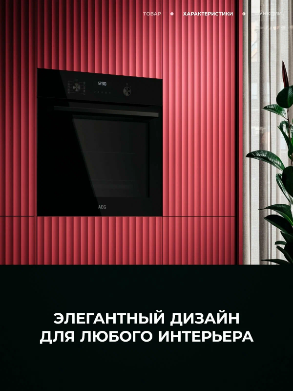Духовой шкаф AEG NBA5C43AK - современный предмет кухонного интерьера сочетает элегантный чёрный оттенок с лаконичными линиями, создавая аккуратный и выразительный акцент в любом помещении. Внешняя панель выполнена в строгом цвете, который легко вписывается в различные стили — от минимализма до хай-тека; сенсорные элементы и утопленные поворотные ручки гармонично интегрированы, образуя аккуратную и функциональную фронтальную поверхность. Электронное управление с LED-дисплеем обеспечивает интуитивно понятную навигацию по режимам, при этом тактильные переключатели дают уверенный отклик, а утапливаемая конфигурация сохраняет чистоту фасада и предотвращает случайные нажатия. Плавное закрытие дверцы отвечает за мягкое и бесшумное опускание панели, что повышает комфорт при эксплуатации и продлевает срок службы механики. Внутренняя организация рассчитана на активную готовку: полезный объём 71 литр позволяет разместить крупные противни и несколько уровней продуктов одновременно, задействовав все пять уровней для равномерного распределения вкуса и текстуры.