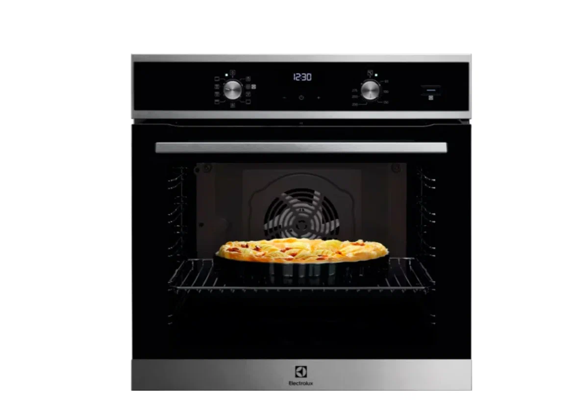 Духовой шкаф Electrolux EOD5F71X сочетает строгую внешность и продуманную эргономику, чтобы органично вписаться в современную кухню. Матовое и металлическое оформление визуально компактно, а черно-хромированные вставки придают ему премиальный вид. Узкие рамки дверцы и аккуратно встроенные регуляторы создают эффект цельной панели, которая не будет перегружать интерьер. Габариты 59.4×59.6×56.9 см и стандартная ниша для встраивания упрощают замену старой техники без дополнительных доработок.
