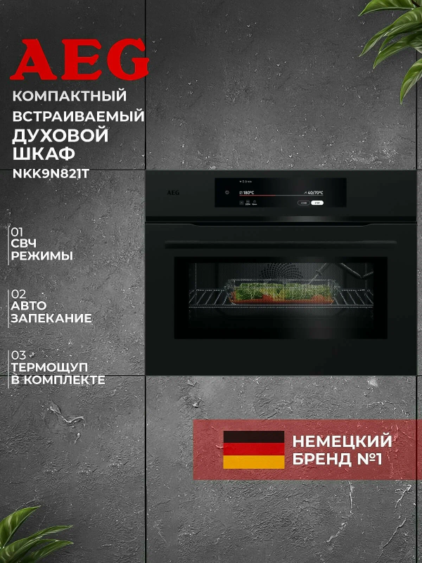 AEG NKK9N821T — компактный духовой шкаф с функцией СВЧ