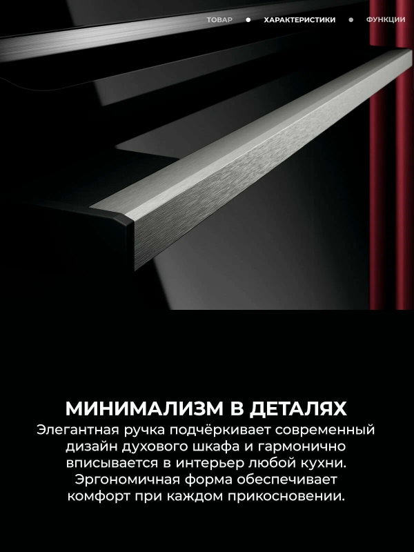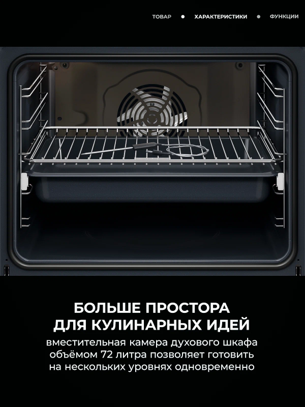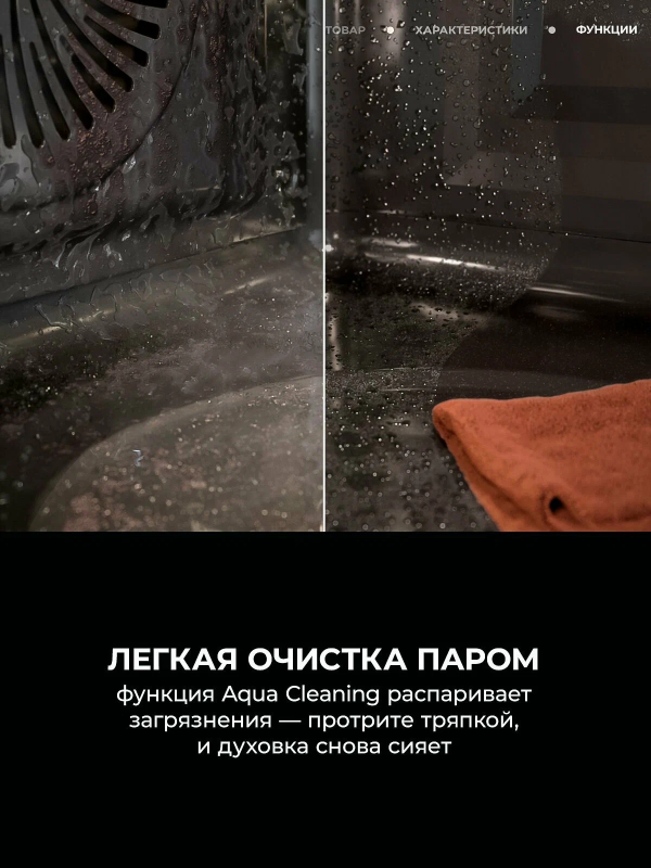 Освещение камеры выполнено галогенной лампой, расположенной сверху, что обеспечивает яркую и естественную подсветку в процессе готовки. Для ухода предусмотрена каталитическая очистка, снижающая необходимость интенсивного ручного мытья, а напоминание об очистке подскажет оптимальное время обслуживания. Безопасность и комфорт в приоритете: оборудование оснащено блокировкой от детей и вентилятором охлаждения, поддерживающим оптимальный тепловой режим наружных панелей. Электронная начинка обеспечивает стабильность настроек, а сенсорные элементы добавляют современности интерфейсу. Модель разработана для тех, кто ценит сочетание функциональности и эстетики, предпочитает гибкие режимы и экономию времени при подготовке блюд различной сложности.