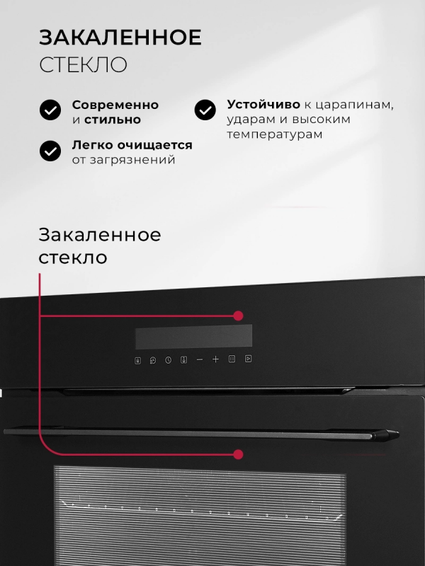 Особенности конструкции: дисплей, полностью стеклянная внутренняя поверхность дверцы духовки, телескопические направляющие