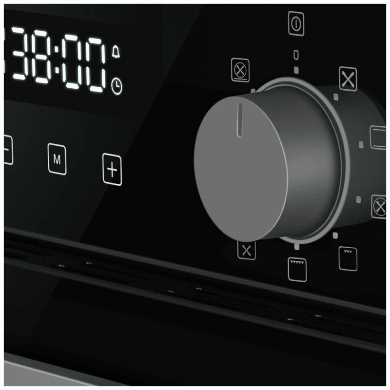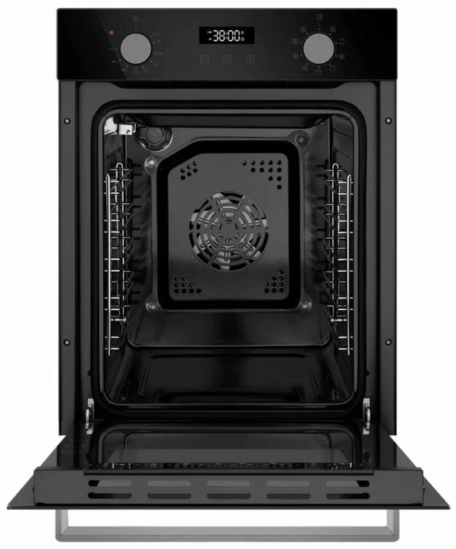 Компактный электрический встраиваемый духовой шкаф объемом 49 л. и шириной всего 45 см позволяет готовить ваши любимые блюда, разместив решетку или противень на одном из 5 уровней боковых направляющих. Внутреннее покрытие камеры выполнено из специальной легкоочищающейся эмали черного цвета.Дверца духового шкафа состоит из 2-х стекол, что создает холодный фронт и делает процесс приготовления безопасным, исключая возможность ожога при касании.Фронтальная панель дверцы сделана из высококачественного жаропрочного стекла черного цвета. Цельнометаллическая фурнитура из матированной нержавеющей стали идеально дополняет общий образ.Комбинированное управление реализовано в виде сенсорного дисплея и поворотных ручек PUSH PULL, которые легким нажатием убираются внутрь корпуса. Можно выбрать режим работы, температуру (50°-250°C), установить таймер и блокировку от детей. В данной модели есть 9 режимов: верхний/нижний нагрев, усиленная конвекция, гриль/верхний нагрев/конвекция, разморозка, гриль/верхний нагрев, гриль, конвекция с нижним нагревом, нижний нагрев, интенсивная выпечка, освещение.Трамп-линии нанесены на внутреннем стекле для создания эффекта непрозрачности фасада: при выключенном освещении не видно посуду, находящуюся внутри духовой камеры, а при включенном освещении можно в деталях рассмотреть весь процесс готовки.