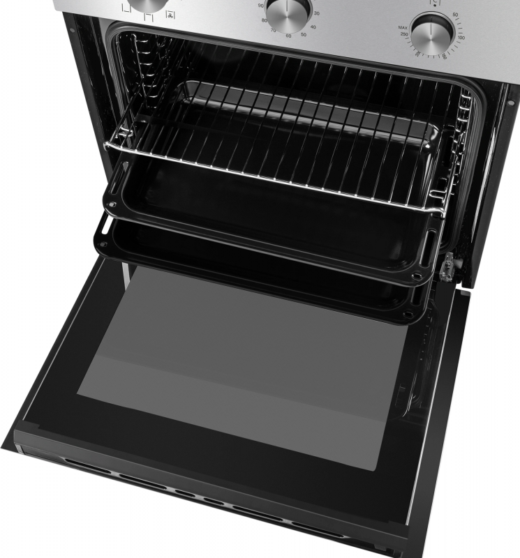 Особенности конструкции: полностью стеклянная внутренняя поверхность дверцы духовки, утапливаемые переключатели