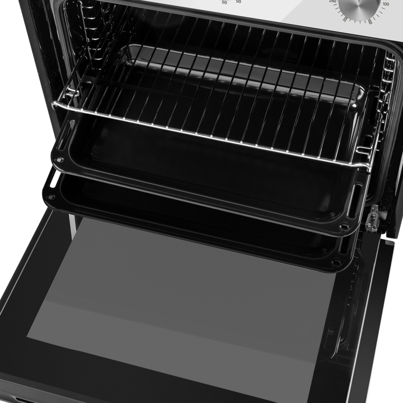Особенности конструкции: полностью стеклянная внутренняя поверхность дверцы духовки, утапливаемые переключатели