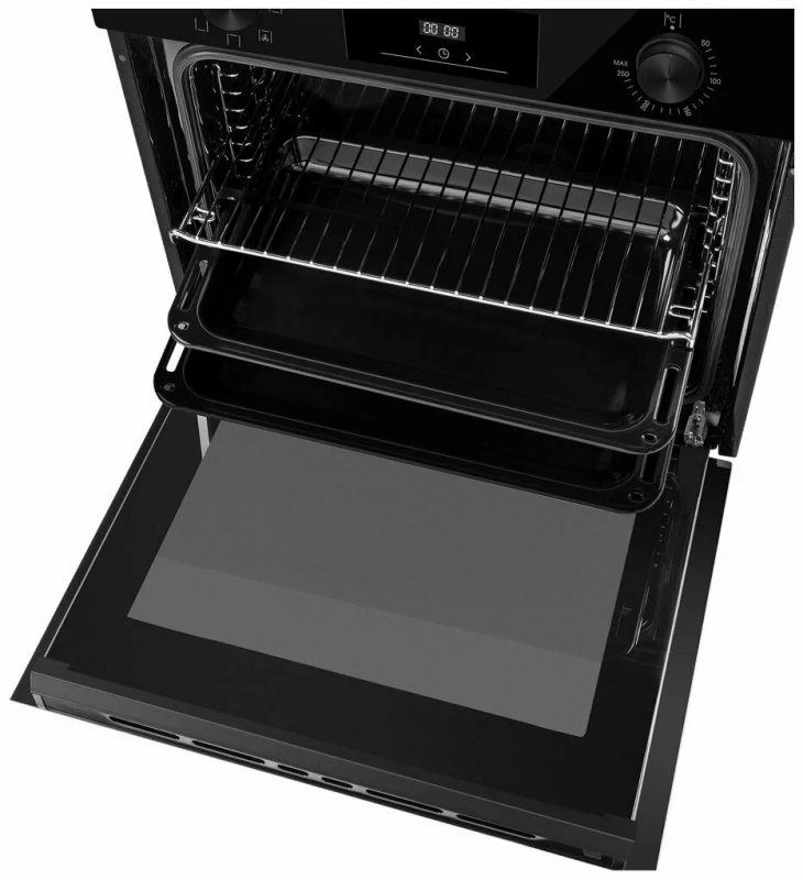 Электрический духовой шкаф FEOH7872B2 – ваш надежный кухонный помощникКогда хочется готовить с комфортом и получать стабильно отличный результат, на помощь приходит этот практичный электрический духовой шкаф. Его строгий фасад из закаленного стекла органично впишется в современную кухню, а продуманная конструкция сделает процесс готовки по-настоящему удобным.Семь различных режимов работы, включая конвекцию , открывают безграничные кулинарные возможности. Конвекция обеспечивает равномерное распределение горячего воздуха по всей камере – теперь ваши пироги пропекаются идеально со всех сторон, а мясо покрывается аппетитной корочкой.Управлять духовкой просто – механические утапливаемые переключатели в сочетании с современным сенсорным управлением обеспечивают комфортную и наиболее точную регулировку параметров приготовления. Встроенный таймер поможет не пропустить момент готовности блюда. А когда нужно проверить, как идёт процесс, достаточно бросить взгляд через тройное стекло дверцы – мощная подсветка прекрасно освещает всю камеру.Несмотря на стандартные 60 см в ширину, этот духовой шкаф удивляет своим внушительным объемом – целых 78 литров полезного пространства. Такой вместительности хватит, чтобы одновременно приготовить несколько блюд: например, запечь мясо на противне, поставить рядом форму с овощами и еще оставить место для пирога.Пять уровней приготовления дают полную свободу в размещении блюд. Можно:поставить высокую форму для кексов на нижний уровеньрасположить мясо на среднем ярусе для равномерного запеканияиспользовать верхний уровень для подрумянивания блюдПри этом конвекция обеспечит одинаково хороший результат на всех уровнях – горячий воздух циркулирует по всей камере, поэтому пироги пропекаются равномерно, а мясо не нужно постоянно переворачивать.Общие данные:Габариты: 59.5x59.5x57 смГабариты ниши для встраивания: 58.5-60x56x55.5 смОбъем полезный: 78 лКонвекция: естьГриль: нетПодсветка: естьСамоочистка: гидролизная, эмаль легкой очисткиКоличество режимов работы: 7В комплекте: стандартный противень, глубокий противень, решеткаУправление и функции:Комбинированное управлениеДисплейУтапливаемые ручки управления Push PullТаймерСистемы безопасности:Количество стекол в дверце: 3Защита от детейДополнительная информация:Максимальная температура, С: 250Материал фасада: стеклоМаксимальная мощность, Вт: 2400Класс энергетической эффективности: AДлина шнура, см: 117Вес, кг: 30.3