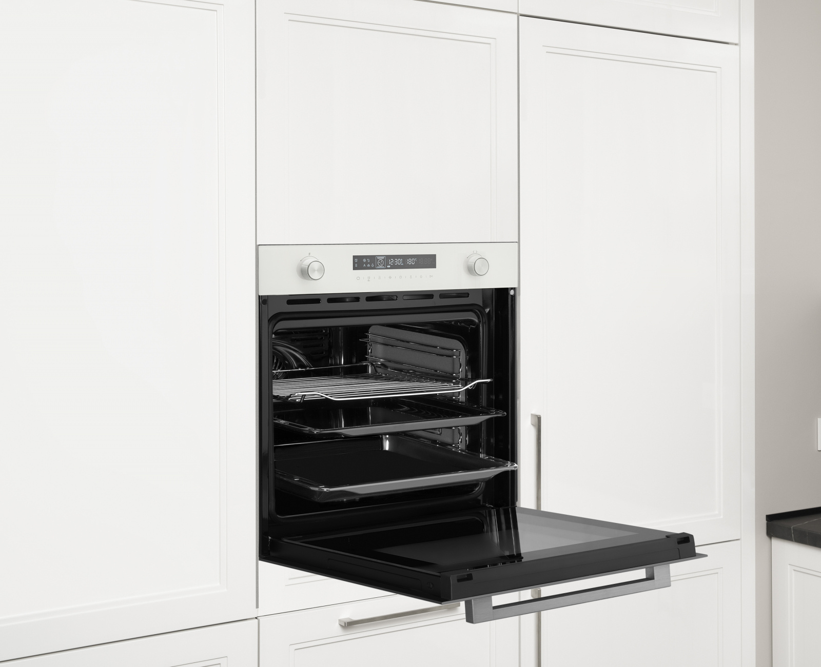 Режимы духовки: Верхний и нижний нагрев (традиционное приготовление), конвекция, ЭКО, верхний и нижний нагрев + конвекция, гриль, двойной гриль с конвекцией, двойной гриль, режим для пиццы, нижний нагрев, разморозка, подсветка, ферментация, предварительный нагрев