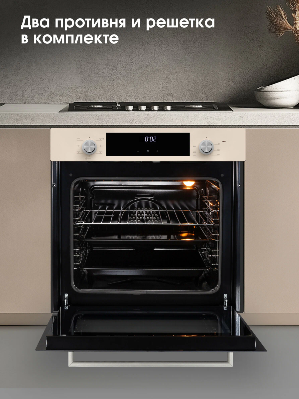 - Подробная комплектация: Духовой шкаф, решетка, противень 2 шт, инструкция, гарантийный талон