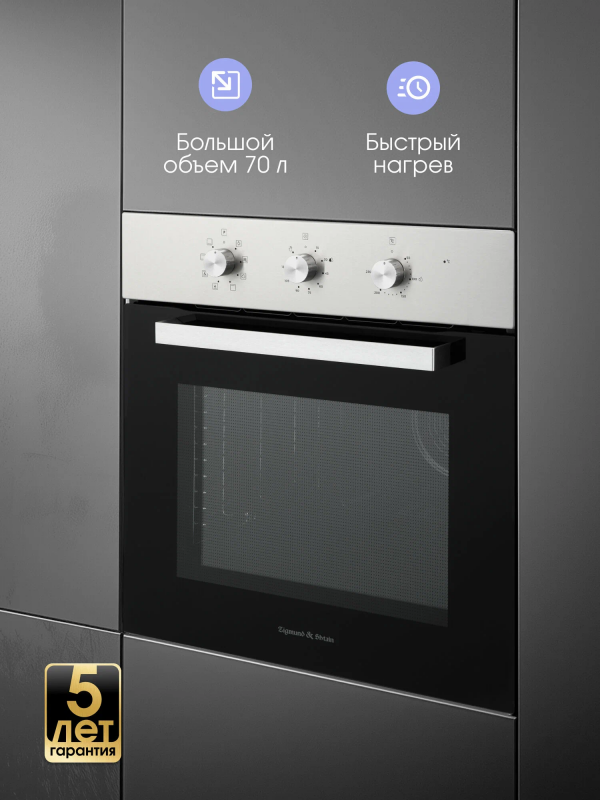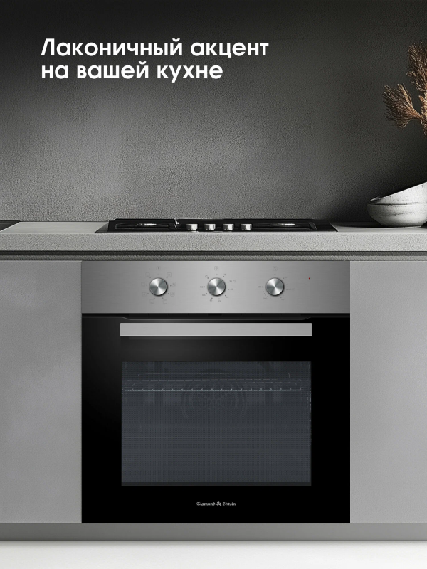 Духовой шкаф Zigmund & Shtain E 176 S - это современное и функциональное решение для вашей кухни. Изготовленный из нержавеющей стали, этот духовой шкаф станет стильным дополнением к вашему интерьеру.Духовой шкаф оснащен независимой установкой, что позволяет его разместить в любом удобном для вас месте.Модель имеет электрический тип, что обеспечивает быстрый нагрев и равномерное распределение тепла. Максимальная температура нагрева составляет 250 градусов, что позволяет готовить разнообразные блюда.Объем духовки составляет 70 литров, что позволяет приготовить большое количество пищи.Духовой шкаф оснащен функцией конвекции, которая обеспечивает равномерное распределение тепла по всей духовке. Это позволяет готовить блюда с хрустящей корочкой и сохранять их сочность.Дверца духовки оснащена двумя стеклами, что обеспечивает безопасность использования и предотвращает нагревание внешней поверхности.В комплекте с духовым шкафом идут решетка, противень и инструкция по эксплуатации.Особенности конструкции включают подсветку камеры и тангенциальное охлаждение, что делает использование духовки еще более удобным и безопасным.В целом, духовой шкаф Zigmund & Shtain E 176 S - это надежный, функциональный и стильный выбор для вашей кухни.