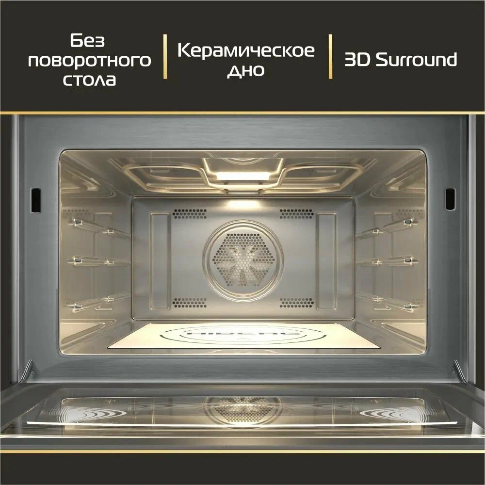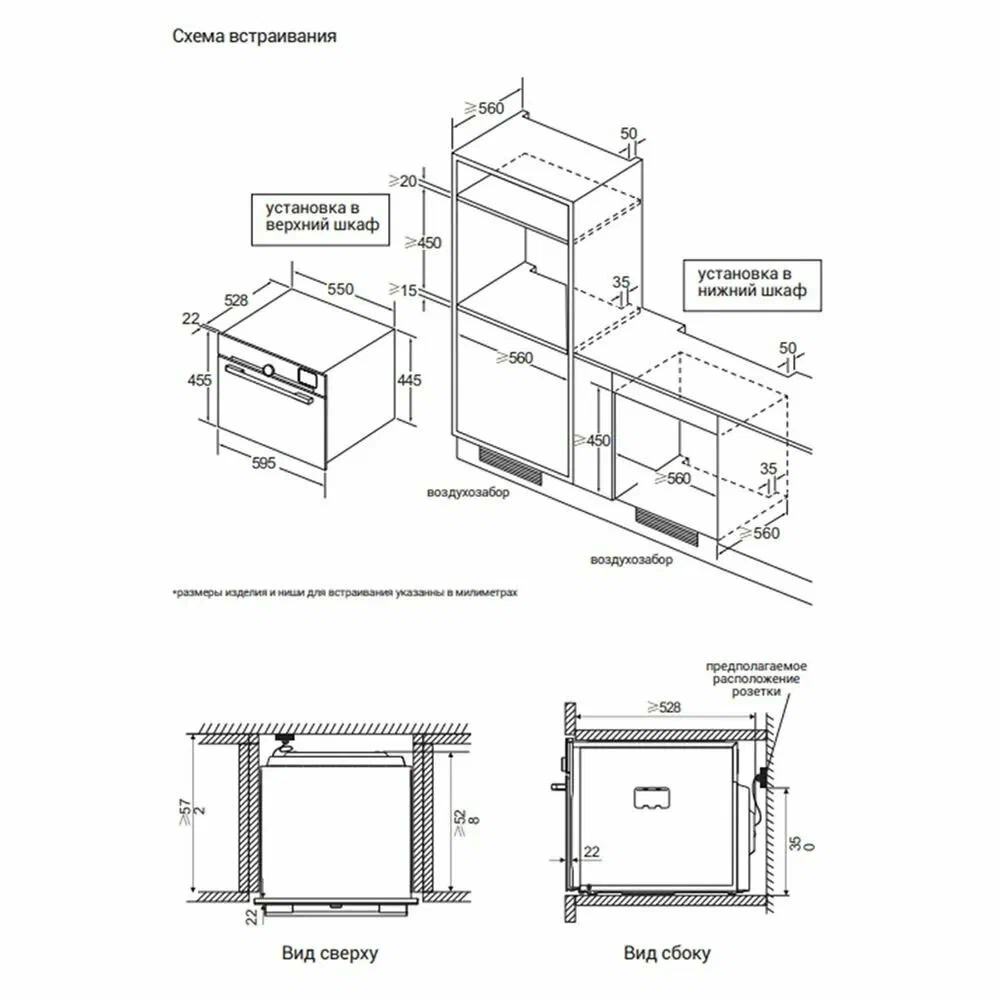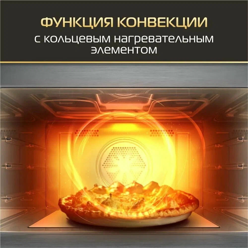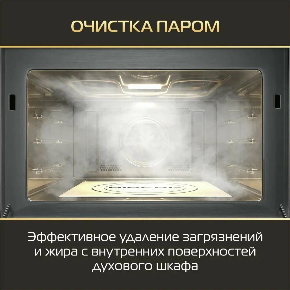 Встраиваемый духовой шкаф HIBERG MS-VM 5115 W SMART с функцией готовки на пару, грилем, разогревом блюд с помощью микроволн, сенсорной панелью с запрограммированными рецептами — это уникальное устройство, созданное для комфортного приготовления и настоящих кулинарных шедевров!Стеклянный фасад духового шкафа черного цвета в сочетании с большой LED-панелью подчеркивает эксклюзивность модели.Духовой шкаф объемом 31 литр идеально подходит для встраивания в гарнитур в небольшом кухонном пространстве. Максимальная мощность 2000 Вт обеспечивает быстрый нагрев и позволяет достичь желаемой температуры для приготовления блюд.Внутренние боковые стенки камеры выполнены из нержавеющей стали, а дно — из стеклокерамики.Лаконичная сенсорная панель управления с большим LED-дисплеем обеспечивает понятное и комфортное пользование всеми режимами и функциями модели. Сенсорные кнопки и регулятор позволяют легко настроить все параметры приготовления и воспользоваться дополнительными функциями. Система рецептов в автоменю избавляет от необходимости угадывать, какую температуру и время приготовления установить: просто выберите необходимый рецепт на дисплее.Режимы и функцииДуховой шкаф, объединяющий в себе функции пароварки и СВЧ, поддерживает 7 режимов работы, имеет 7 дополнительных функций и 51 программу с предустановленными настройками, которые позволяют приготовить все, что только пожелаете.Диапазон рабочих температур в духовом шкафу: 38–230 °C.Приготовление на паруЭто прекрасная возможность получить вкусную и полезную еду — рыбу, мясо, паровые котлеты из курицы или индейки, гарниры и овощи — без использования масла. Для этого нужно добавить воду в специальный резервуар до максимальной отметки и выставить необходимый режим приготовления на пару. Кроме пользы для здоровья, варка на пару экономит время, так как блюдо никогда не пригорит и готовится равномерно. Любая выпечка, приготовленная с помощью пара, получается просто изумительной. Мясо, рыба и овощи идеально пропекаются со всех сторон и приобретают золотистую хрустящую корочку, оставаясь сочными внутри и сохраняя все полезные свойства.Добавление пара к другим вариантам нагрева позволяет сделать блюда более сочными и ароматными, а также избежать их пересушивания.МикроволныБлагодаря режиму «Микроволны» можно быстро и легко разогреть любимые блюда прямо в духовом шкафу. Устройство, объединяющее в себе функции микроволновой печи и духовки, экономит пространство на кухне.Режим «Микроволны» может использоваться как отдельная программа для разогревания блюд, так и совместно с другими режимами нагрева: пар и микроволны, гриль и микроволны. Это позволяет готовить широкий спектр блюд — от простых закусок до сложных десертов — и все с помощью одного устройства.