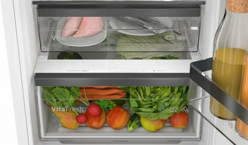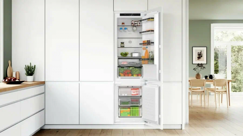 Встраиваемый двухкамерный холодильник Bosch KIN96SFD0 - это превосходный выбор для тех, кто ценит комфорт, функциональность и эстетику. Белый цвет придает этому модели свежий и чистый вид, который впишется в любой интерьер. С общим полезным объемом 290 литров, из которых 215 литров отводится холодильной камере и 74 литра морозильной, этот холодильник идеально подходит для средних и больших семей. Устройство оснащено двумя камерами, что позволяет размещать продукты в соответствии с их температурными требованиями для сохранения свежести. Особенностью этой модели является система MultiAirflow, которая обеспечивает равномерное распределение холода в каждом уголку холодильника. Вместе с функцией суперохлаждения она помогает сохранять продукты свежими в течение длительного времени.