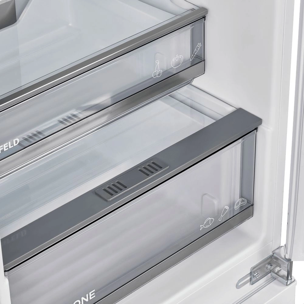 Современный встраиваемый двухкамерный холодильник высотой 177 см.